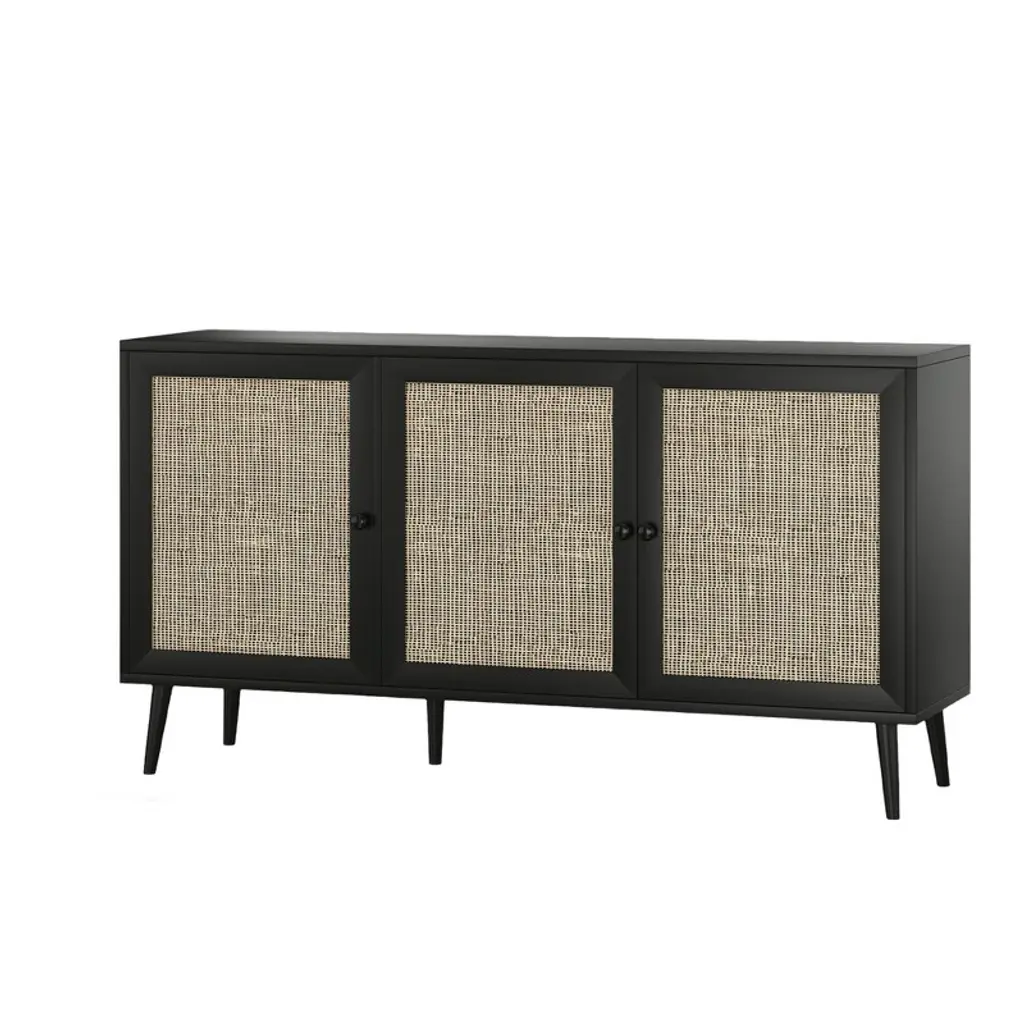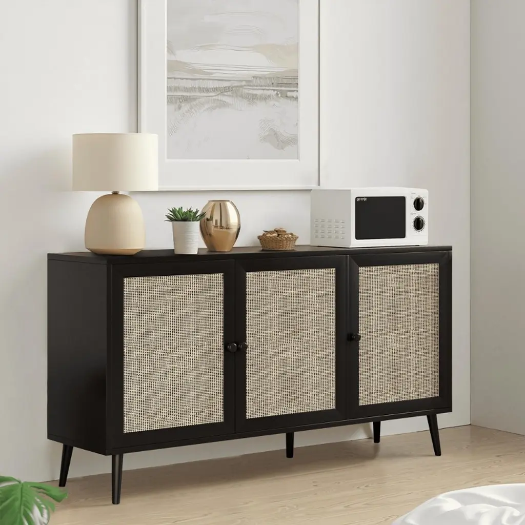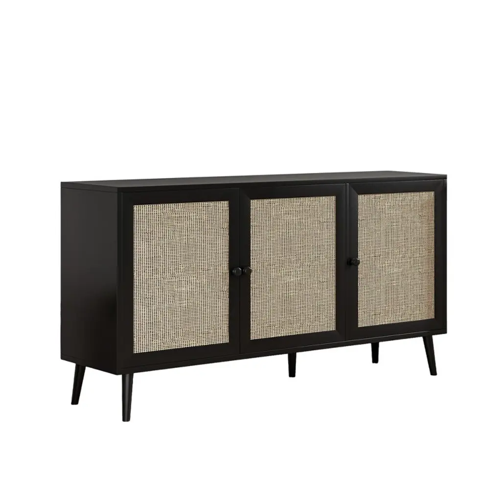 Mayeerty 59x15x31 Inch Black Modern Sideboard Buffet 3 Rattan Doors For Living Room Entryway