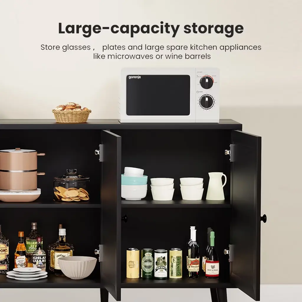 This MAYEERTY sideboard buffet cabinet features natural rattan doors with a handmade look, giving it a charming and slightly rustic appearance. It offers large storage space for books, photo albums, kitchenware, and more. Perfect for use as a dining room sideboard, kitchen cabinet, or buffet server. Made with sturdy wooden boards and thick legs, it can support over 300 lbs and includes anti-tipping components for safety.