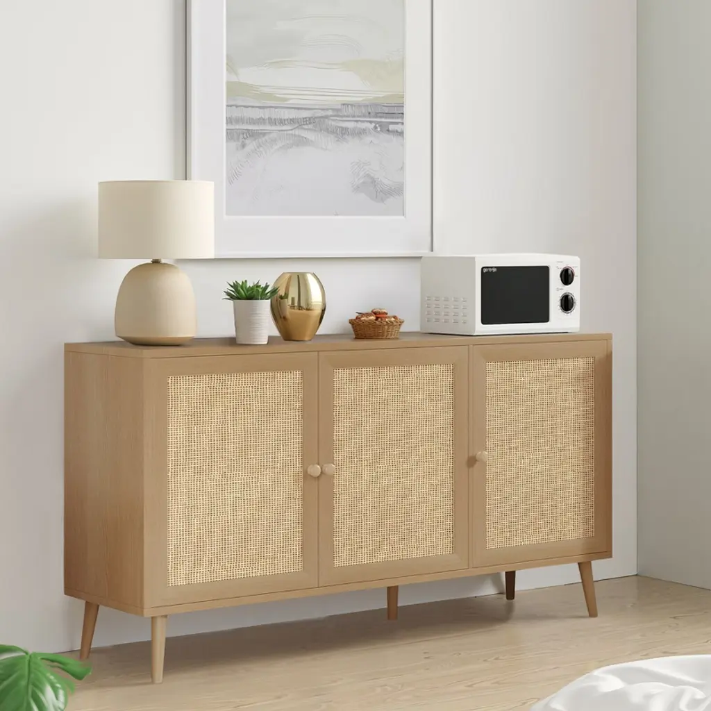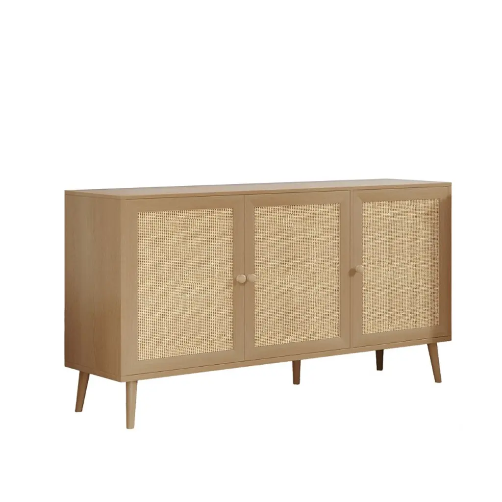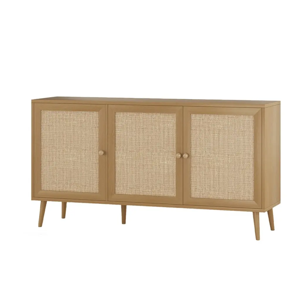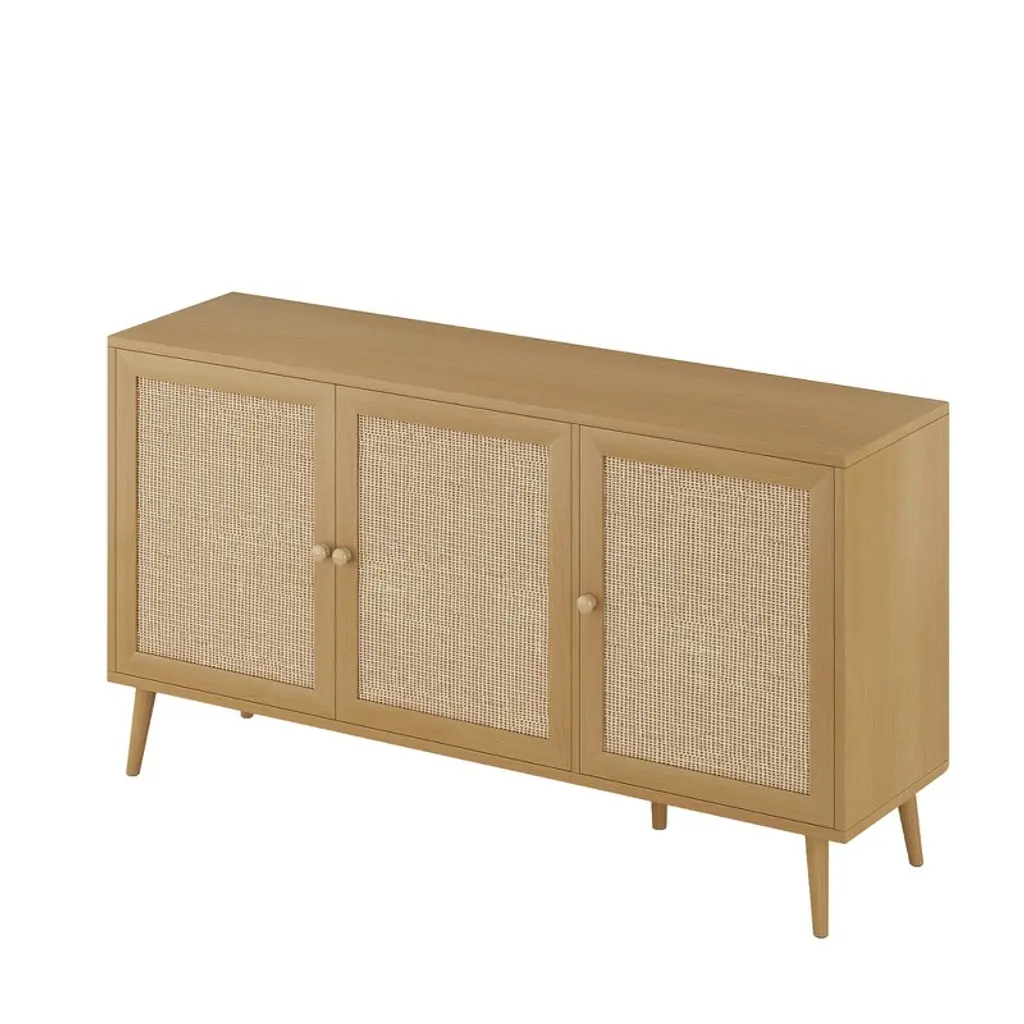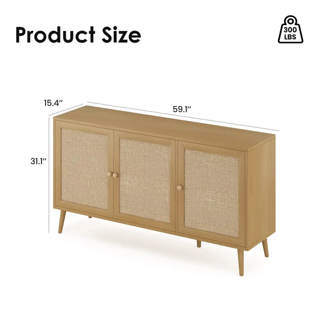 Mayeerty 59x15x31 Inch Natural Modern Sideboard Buffet 3 Rattan Doors For Living Room Entryway