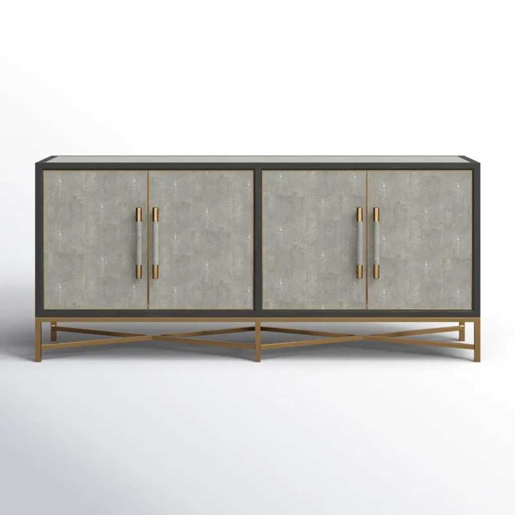 Contemporary Modern Style. Part of Mako collection. Dimensions: 76"W 18"D 34"H. Product weight: 157lbs. Color: Grey. Matt Lacquer: No Stain finish. Assembly is not required. Made in China. We are offering 1 year limited warranty (covered for any manufacturer's defect). Construction: Plywood,Oak Veneer,Polyurethane. Frame: Solid Black Oak Frame. Other materials: Brass Legs. We understand how important your home is and how decorating your kitchen, dining room or bedrooms with classy, contemporary furnishings can help make it a place that reflects who you are. We believe in the power modern furniture has in creating not just a home but YOUR home. We believe in feeling good about our home's environment, and we think you do too.