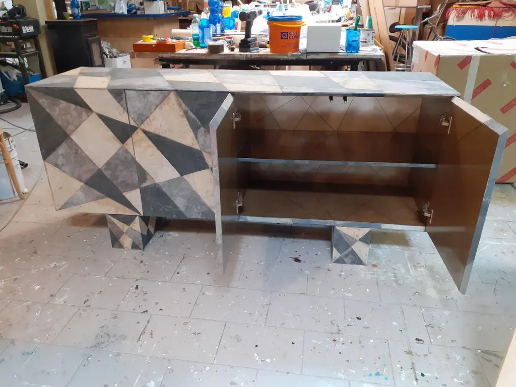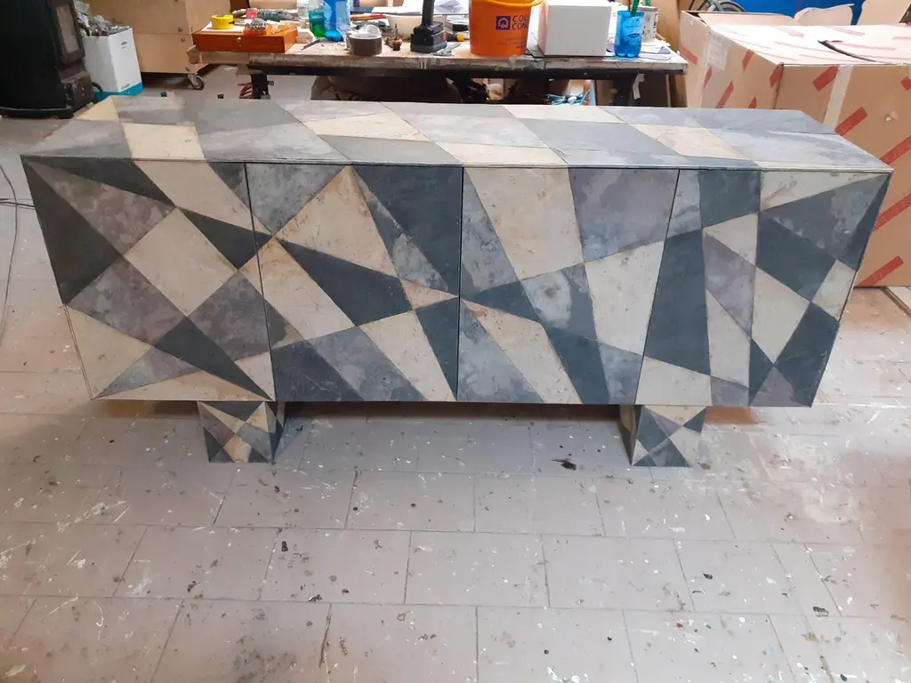Meets credenza by Andrea GiomiDimensions: D 47 x W 175 x H 80 cmMaterials: StoneAndrea Giomi, was born in Castelfiorentino in the province of Florence in1970. Develops his training and experience in the world of furniture as a craftsman. With great passion and creativity he approaches the world of design, creating various prototypes with a careful search for recycled materials and eco-sustainability.