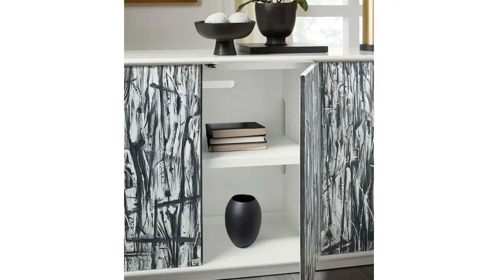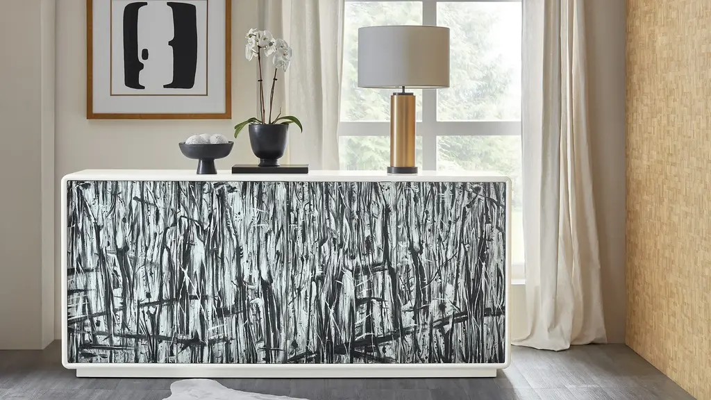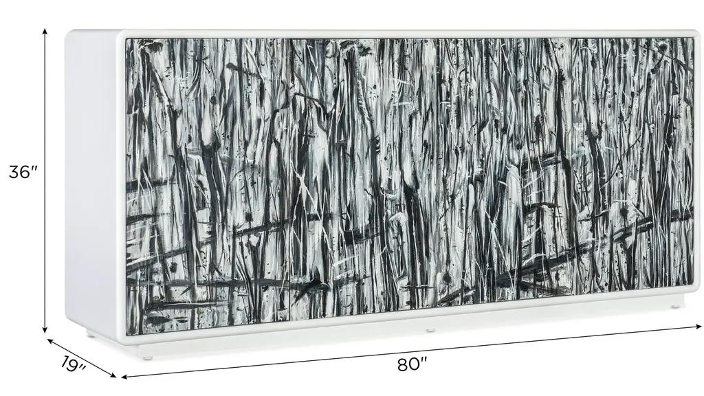 An eclectic blending of colors, textures, and materials in a vibrant collection of one-of-a-kind artistic pieces, the Melange Graffitio Credenza is meant to inspire you and fuel an experience of self-discovery, inspiring a renaissance in your home. Each piece of M_lange has its own story. The designs are versatile and timeless, easily transcending from one life stage to the next, from home to home and generation to generation.