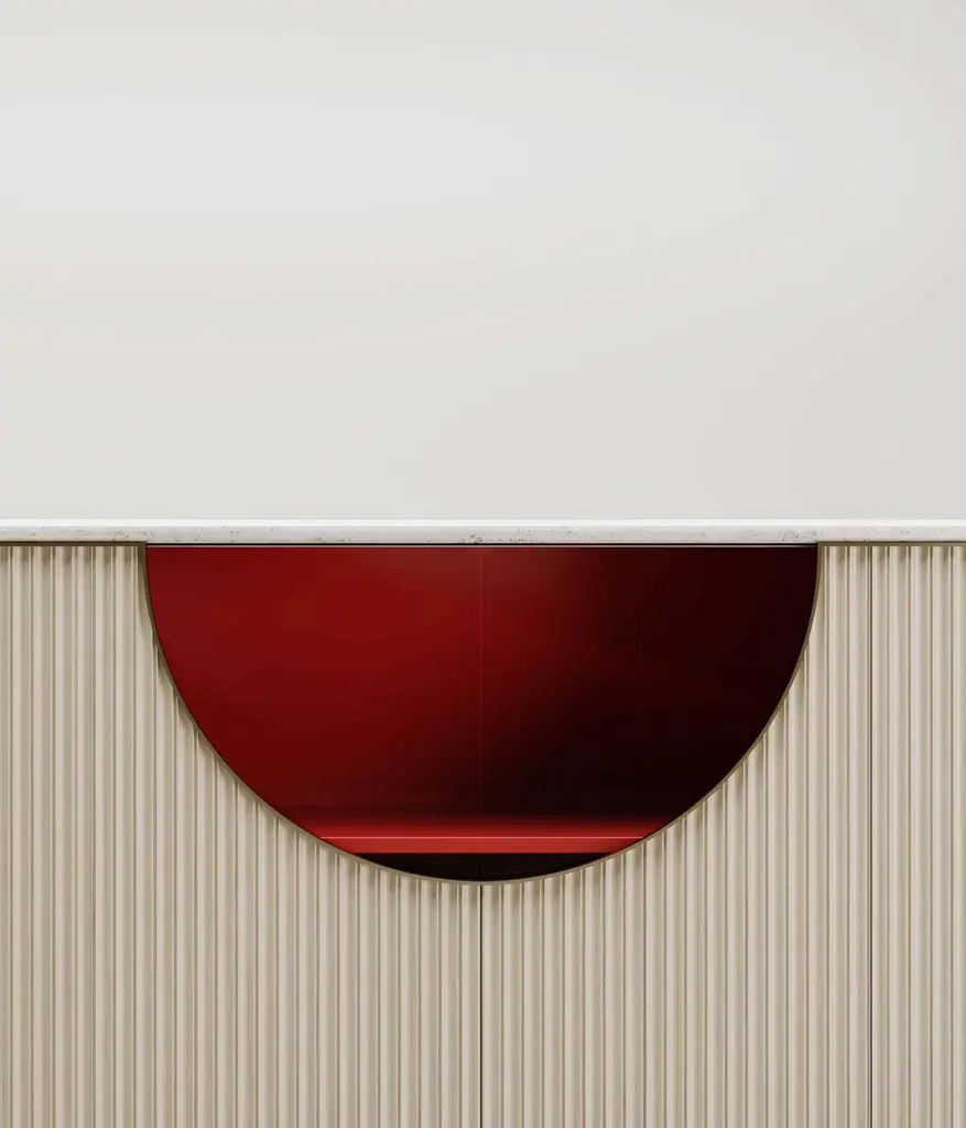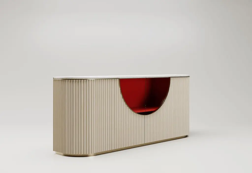 Melody Sideboard by Andrea BoniniLimited EditionDimensions: D 51 x W 232 x H 95 cm.Materials: Lacquered wood with gold metal details.Made in Italy. Limited series, numbered and signed pieces. Custom size or finish on request. Different marble options available: Panda white, Palissandro blue, Palissandro royal, Verde Alpi, Travertine and Palissandro classic. Also available in Champagne gold galvanic finish and Silver galvanic finish. Glass can be extra clear or bronze finish. Wood interiors options are available: Noce canaletto wood or Oak. Please contact us.The aim of the Edition Collection is to launch a collection of sculptural furnitureelements produced in a limited series which can be made exclusively by expert and specialized craftsmen.Each piece is intrinsically connected and portrays elegance through geometry and proportions. Meticulous detail of symmetry, bold and deep lines, virtuous and ample curves, cuts and grafts can be found in every single piece.Each product encloses the complexity of its production process in a pure and virtuous form.They are limited editions, each piece signed and numbered, appreciated as art or as design. They are the result of past experiences yet the keeper of future projects. The purpose of andreabonini edizioni? To tell a story through the use of materials between tangent reality and the world of dreams.Andrea Bonini seizes every detail that strikes his attention with a critical eye.A still image, imprinted in the mind, which becomes an idea through a process of mental elaboration and a fusion of scenarios. The cultural background in which Bonini was born is characterized by the timeless charm of a precious combination of two materials that enhance each other: metal and marble.His is a family of metal artisans for several generations and Bonini was born in a landscape which is the cradle of marble extraction and processing. The deep knowledge of these two fascinating and natural elements leads him to often insert them in his works; he prefers them in their authentic finishes and shades, sometimes raw or with their natural imperfections, typical of this material.Adopted by the city of Milan; here he gains his first success and initiates important collaborations. Bonini listens and follows the artistic trails left by his masters; from Carlo Scarpa to Franco Albini and Christian Liaigre.Andrea Bonini is sensitive and concentrated, with meticulous commitment he follows every phase of his products and his interiors; he is personally active in dealing with the craftsmen and his sharp pencil captures any variation or improvement.During his career he chooses to design for companies with high artisanal criteria; the same intention is reflected in his interior projects, attention to every detail with a sartorial approach recognizable on the international scene. Bonini has successfully completed and is currently working on projects in Italy, China, the United Kingdom and the French Riviera.To date, his studio atelier is located in Milan in via Montenapoleone, core of Italian excellence. It is a small yet refined ambience; a boutique with contemporary taste.Here his pencil gives life to all his projects, elaborated in every detail together with his team, producing a strongly recognisable and prestigious result.