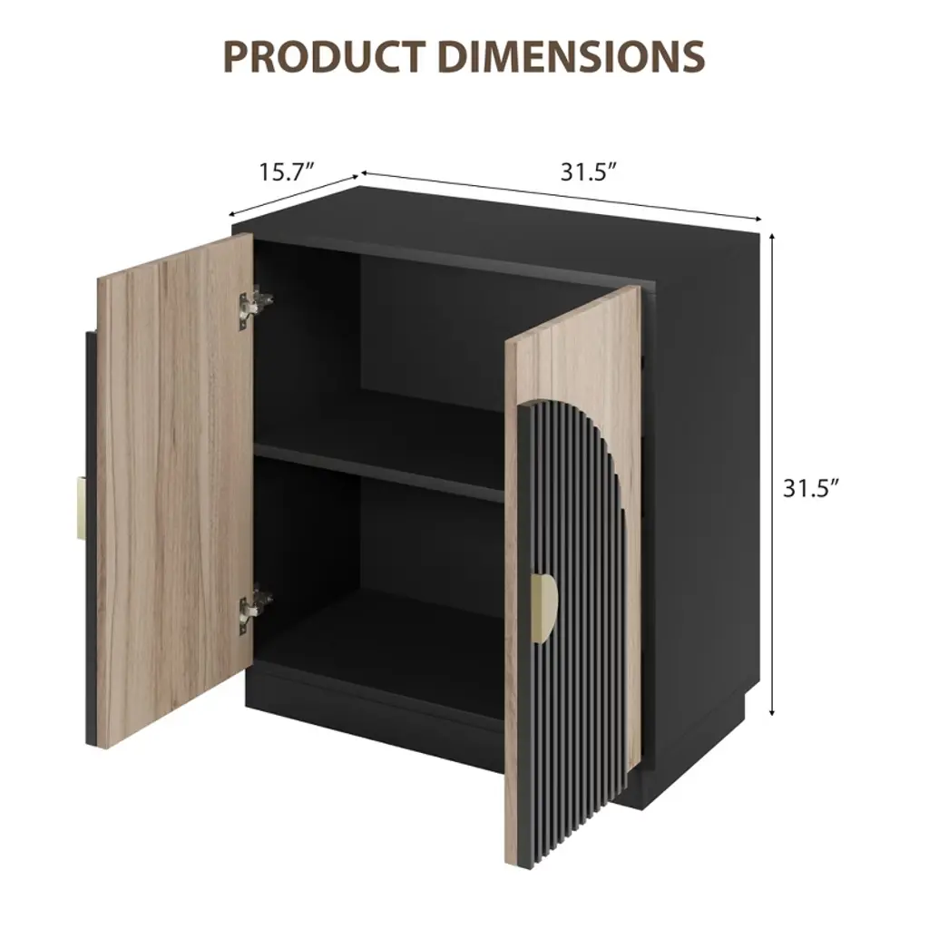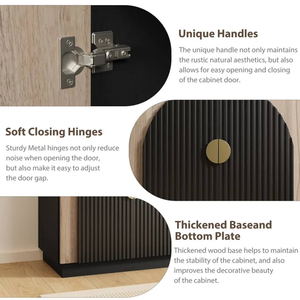 Mid-century Modern Buffet Cabinet With Fluted Design & Arched Doors, Storage Sideboard For Dining Room, Living Room, Kitchen, Adjustable Shelves