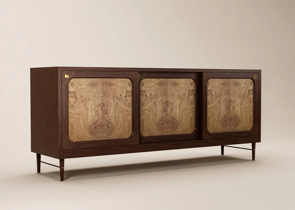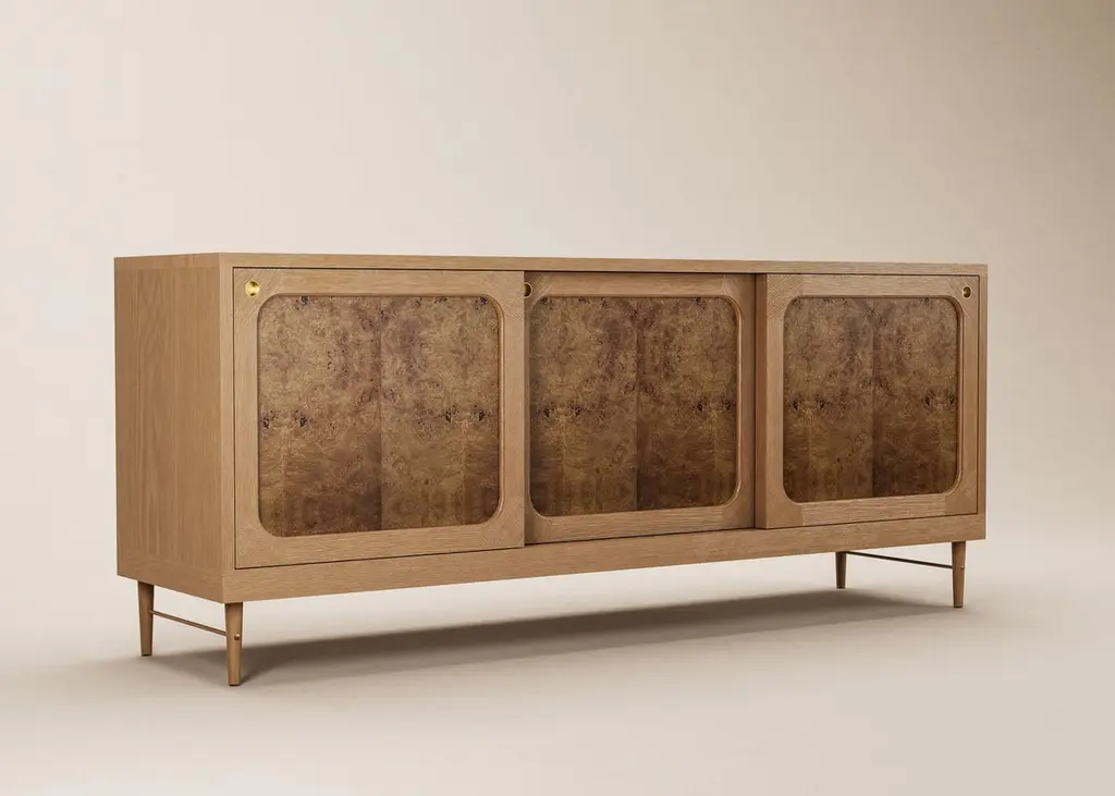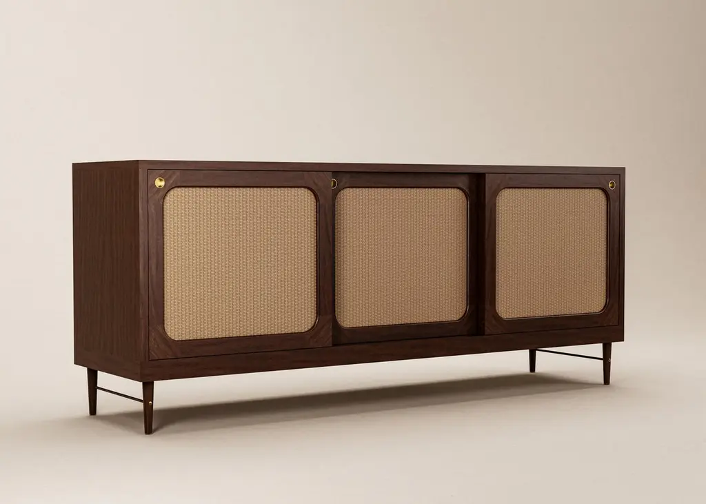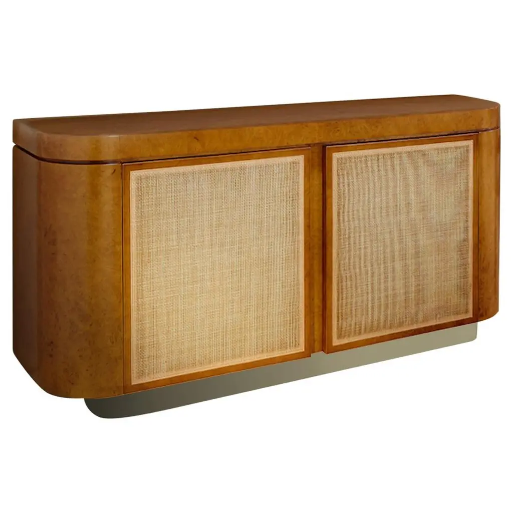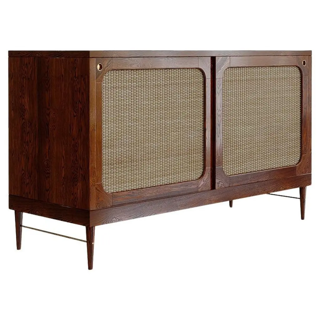 A sideboard in European oak and rattan, developed by Lind + Almond especially for the iconic Sanders, Copenhagen's premier luxury boutique hotel.Handcrafted to order in Europe. Internally there are two vertical sections, each with one adjustable shelf.Dimensions (extra large) — 1950mm (L) x 500mm (D) x 795mm (H)Also available in the following sizes:Small — 1050mm (L) x 450mm (D) x 795mm (H)Medium — 1350mm (L) x 500mm (D) x 795mm (H) Large — 1650mm (L) x 500mm (D) x 795mm (H)The sideboard can be produced to bespoke sizes for a surcharge. Please note - lead time is maximum. We often hold a small amount of stock which is available much quicker .