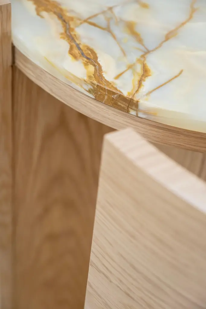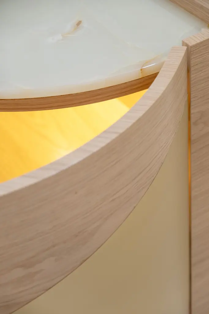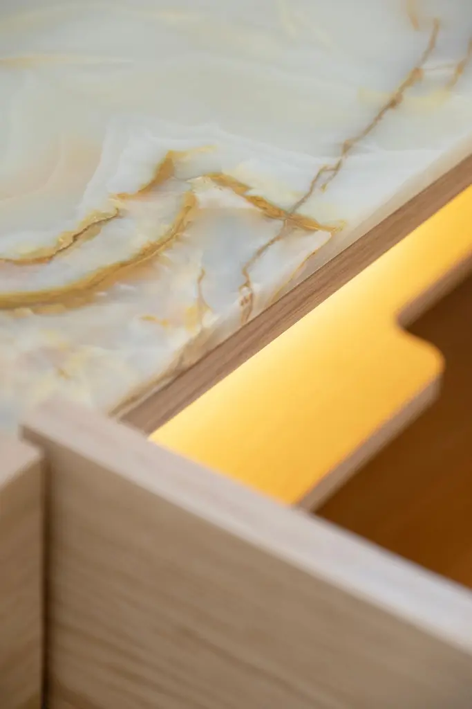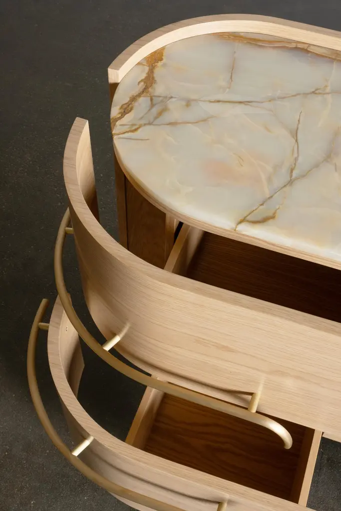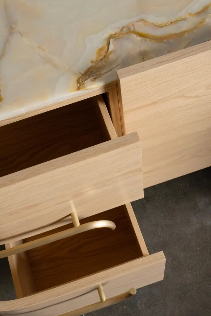 Mid-Century Modern Olival Sideboard, Oak, Onyx, Brass, Handmade By Greenapple