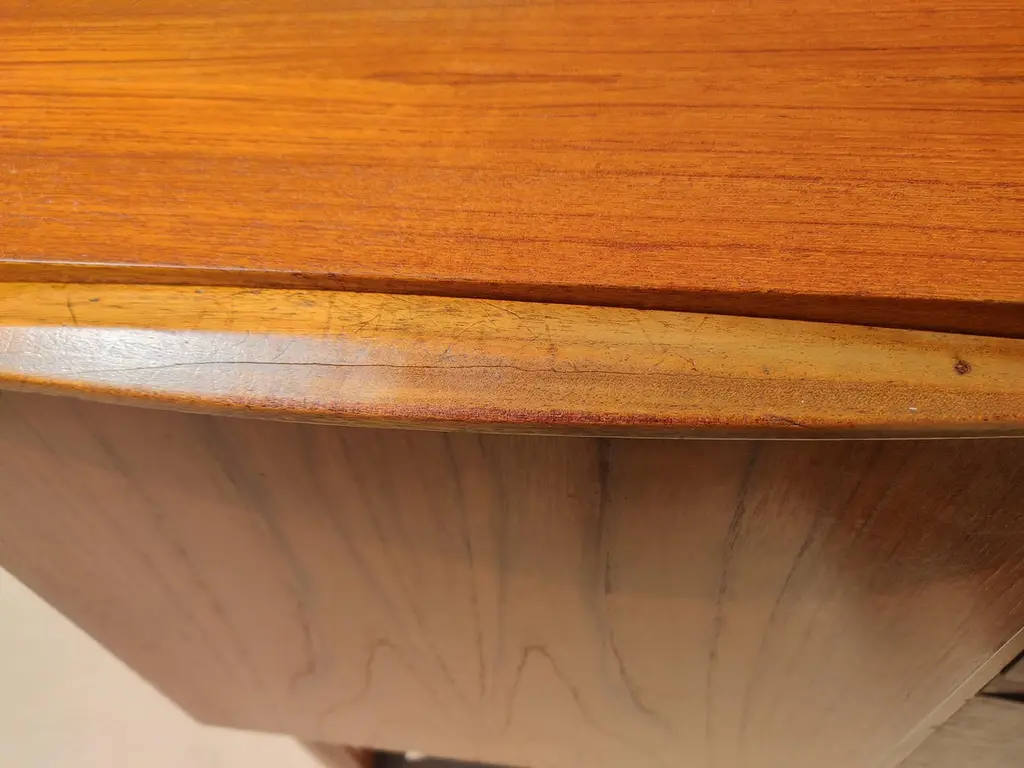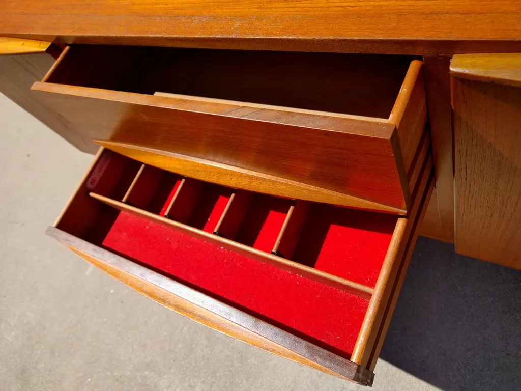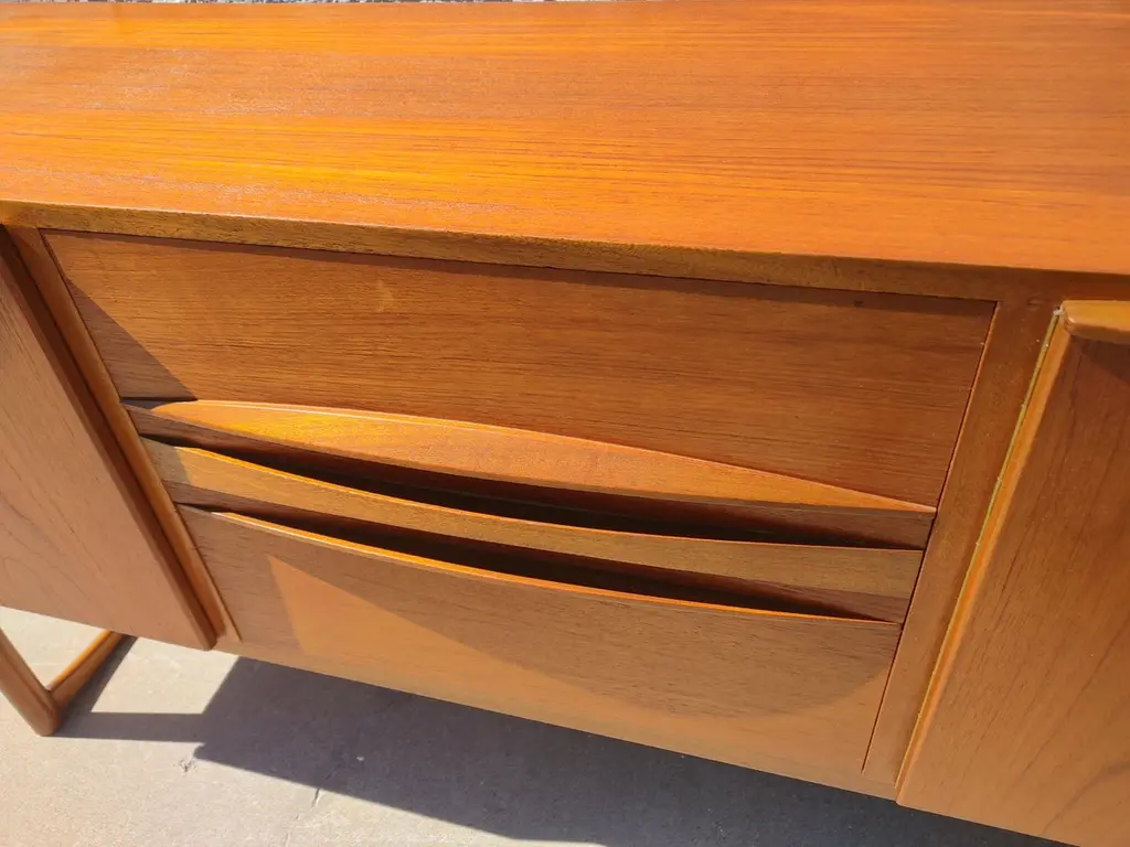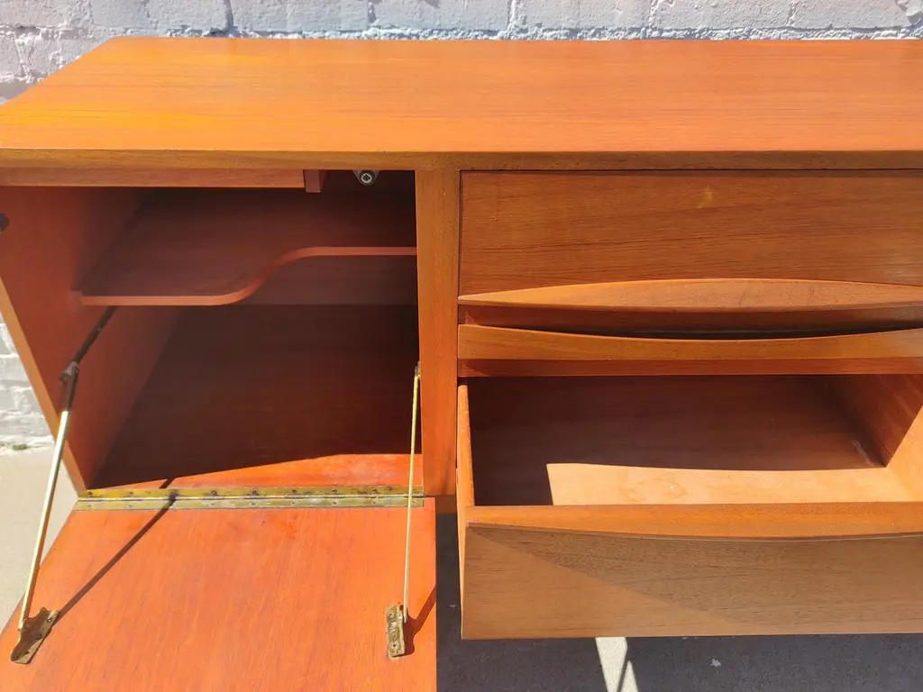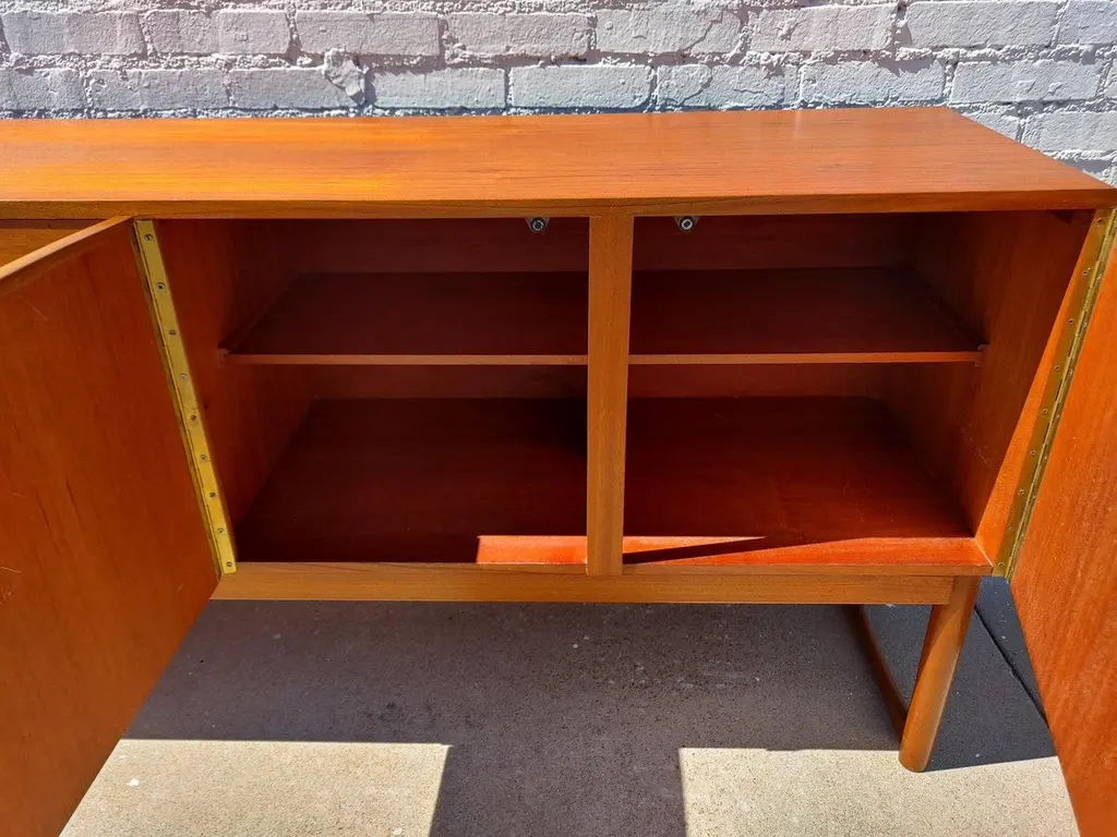 Mid Century Modern Teak Credenza by McIntoshAbove average vintage condition and structurally sound. Has some expected slight finish wear and scratching. Top has been refinished and does not have original factory finish. Outdoor listing pictures might appear slightly darker or more red than the item does indoors. Please request additional pictures. Additional information:Vintage from the 1960sMaterials: TeakDimensions: 79 W x 19 D x 32 H in