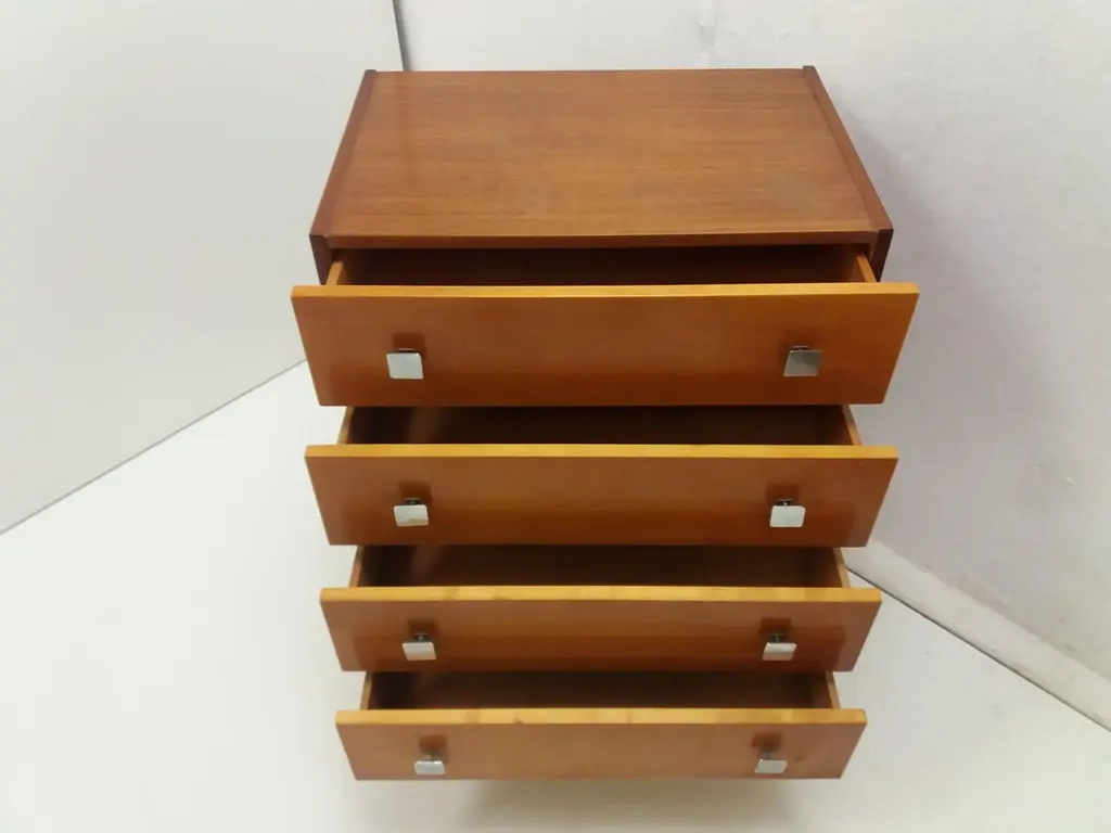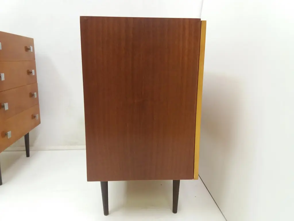 - Made of Czechoslovakia- Made of wood, chrome, metal- Dimensions of chest of drawer: H 79cm x W 60cm x D 42cm- Good, original condition.