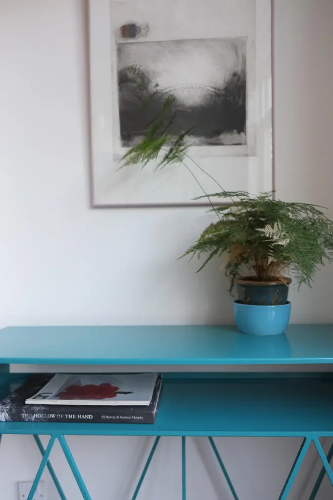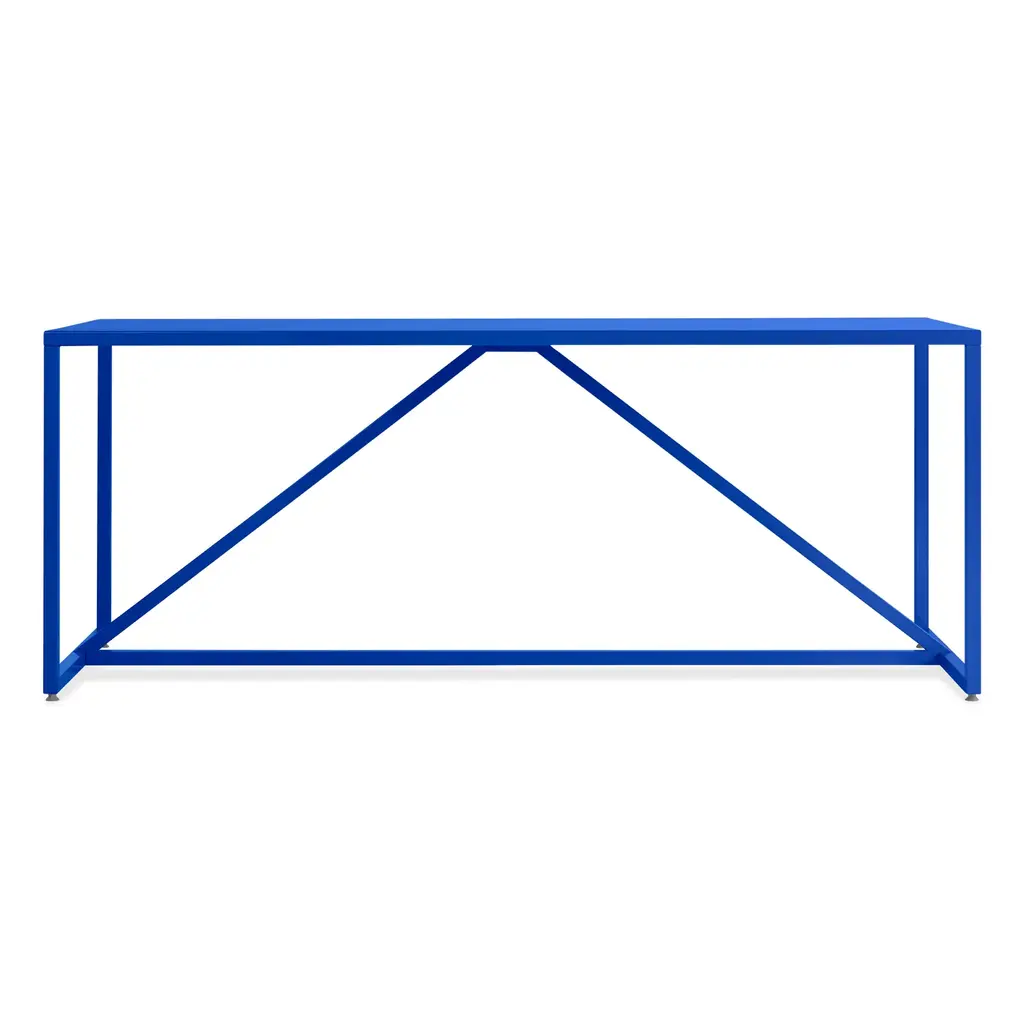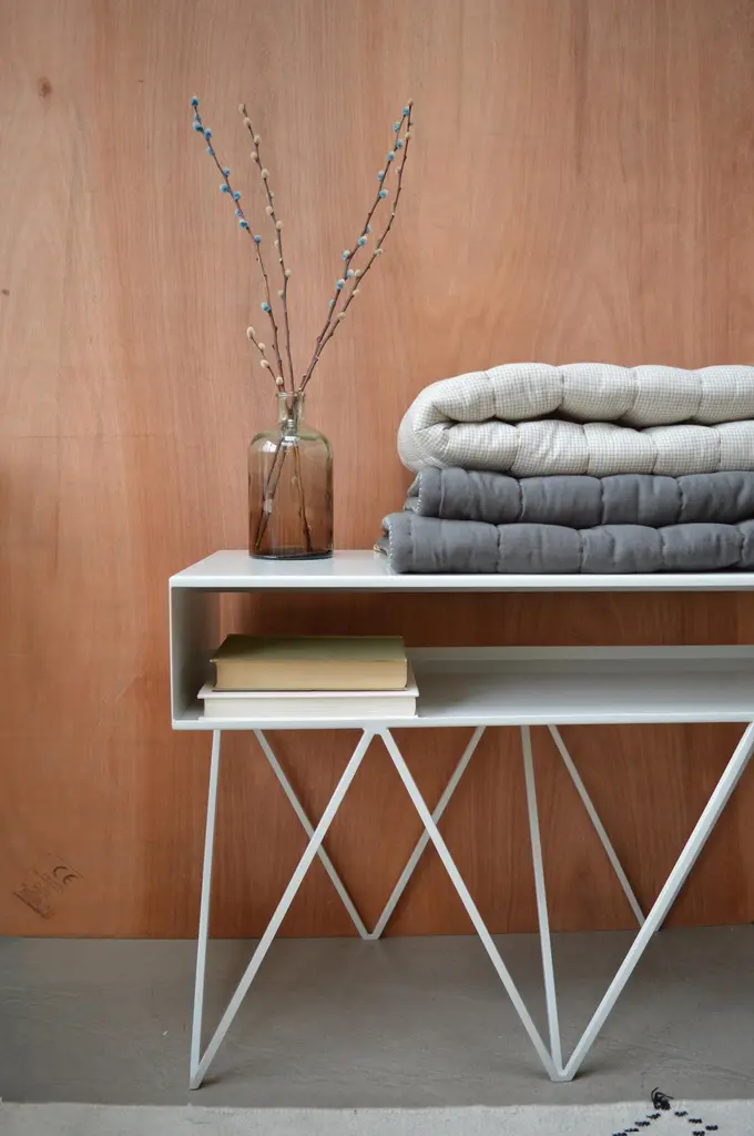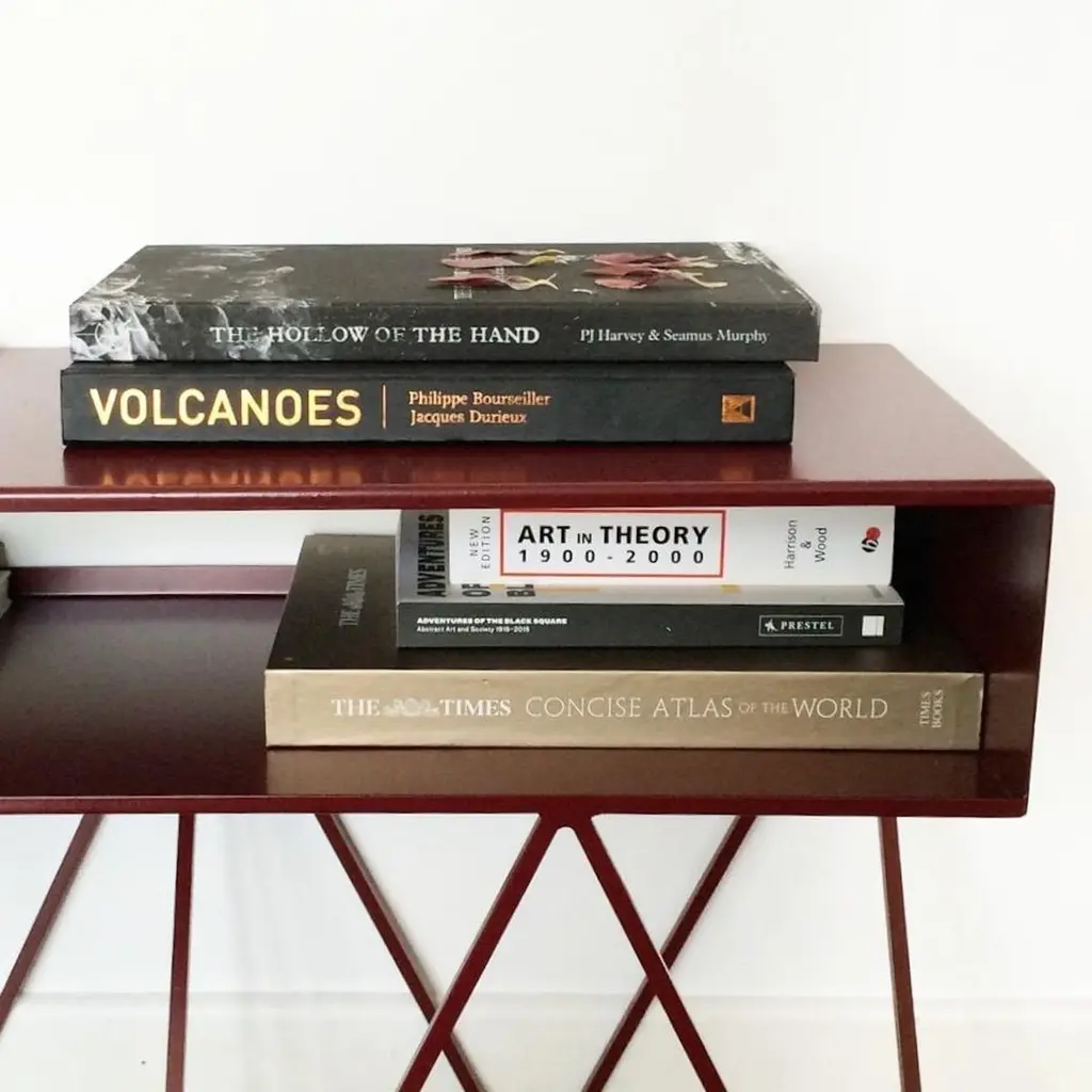 The sculptural low steel sideboard Robot Too is great as a media/AV stand. The slim pigeonhole shelf on top has a half-open back to allow for wiring and leads. Playful and elegant in design, the Robot Too is made to last with fully welded, solid steel construction and a powder-coated finish. Available in fifteen powder coated colors. .All & new products are manufactured in Britain in small batches. They have plenty of character as every weld is different. The result is a collection of furniture that celebrates those little imperfections that make objects beautiful.Measurements: 90cm wide, 37cm deep, 61cm high. 17cm shelf height.Mirka & JoZig-zag-legs/ Registered design. Community design registration number: 002391813-0001.
