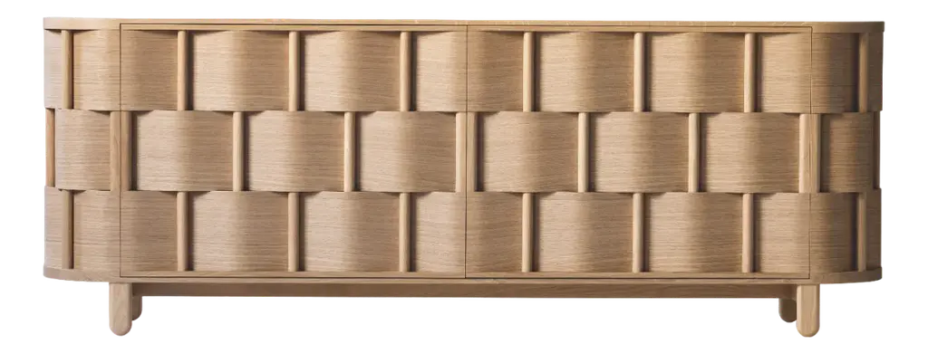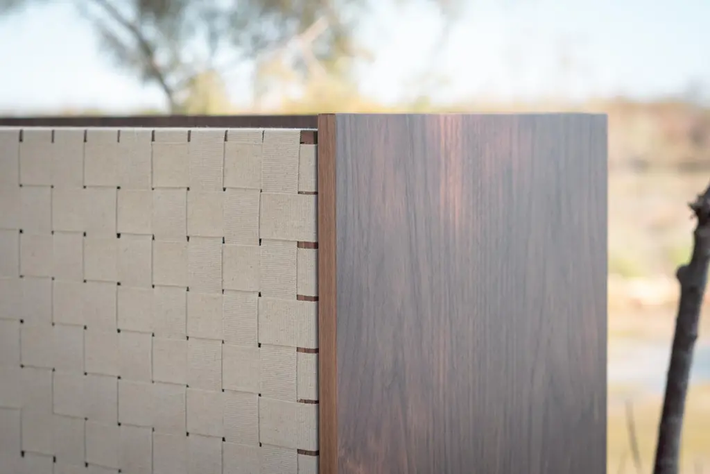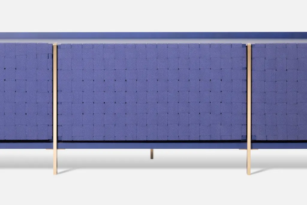 “Fashion is not an ornament, it is architecture. It isn’t enough that a dress be beautiful, It has to be built like a building, because like a building it is the materialisation of an IDEA.” Roberto Capucci – La ricerca Della regalità.In MILLA – the cabinet designed for MEDULUM by Milanese designer Filippo Protasoni – a simple ribbon ofnatural-fibre fabric transforms into a decoration and untangles its weave – at once both clean and geometric, tactile and textural – along the front doors of the piece of furniture, with their smooth black walnut surfaces. A delicate realisation once again proposes the weave understood in its primordial form, with the threads intersecting on the frame individually, by hand, with the spaces which gradually fill up until they become surfaces, the textural contrast in the dialoguebetween the fabric and the wood is emphasised by the presence of slender support points made of brass:structural elements with a sleek and refined linearity emerge gleaming as they reflect sparks of light. Likepins in a dress.The coming together of two giants of Italian know-how creates an unexpected and surprising dialogue. A piece of furniture which weaves together the profound culture of the fabric of the Italian fashion industry and the strong manufacturing expertise which sets apart the furniture sector.Like the skilfully woven weft of a tailormade piece of attire, in MILLA the fabric strip lies at the centre of the design: it defines its spaces and interprets them, becoming the narrative voice. The IDEA takes shape and becomes architecture; it is not just cloth, but rather a thought.Sizes available— MB183.L W183 x H42 x D43 cm— MB222.L W222 x H42 x D43 cm— MA183.L W183 x H61 x D43 cm— MA222.L W222 x H61 x D43 cmMATERIALI / MATERIALSVeneered wood, solid wood, ribbon, varnished satin brass.