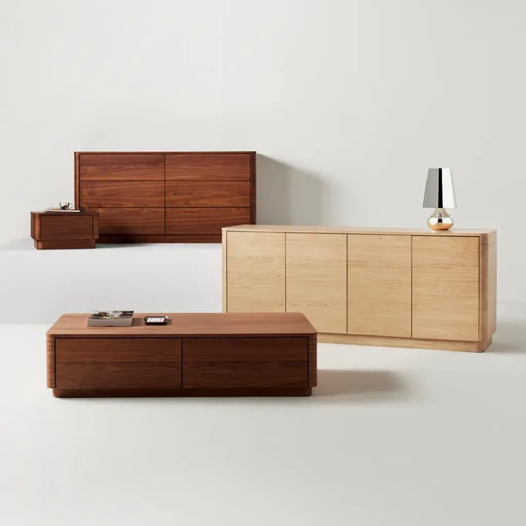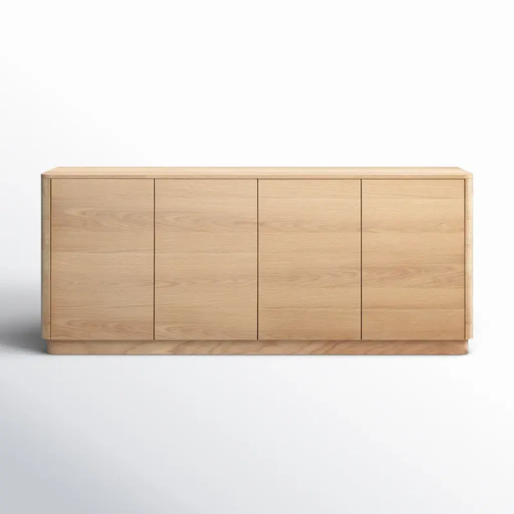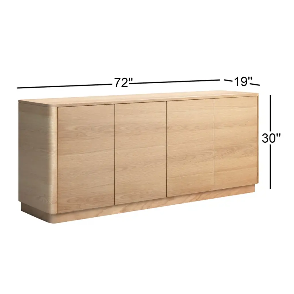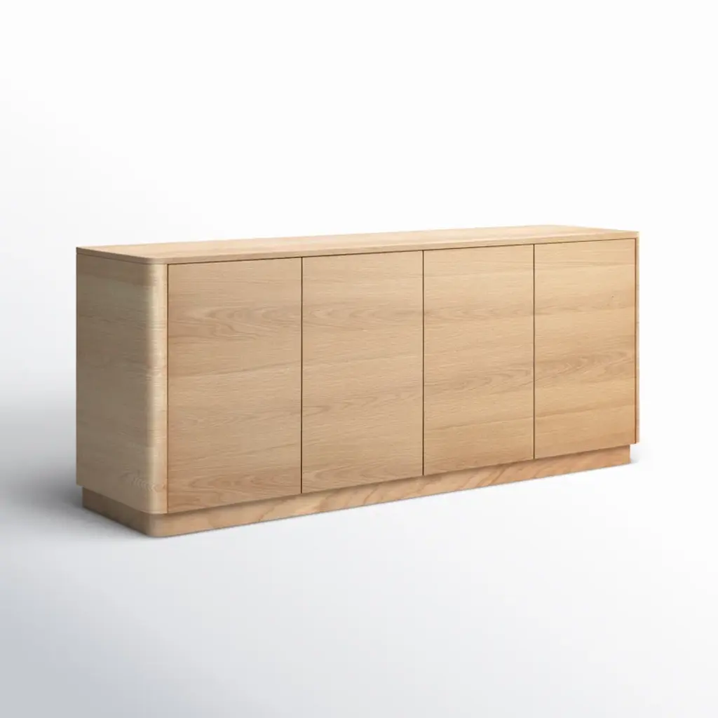 Natural allure meets minimalist design. The Mille sideboard celebrates the captivating tones of natural wood grain, seamlessly integrated into a soothing design, embracing natural beauty and character. This sideboard boasts gently rounded corners and four doors that open to generous storage space while embracing walnut's natural beauty and character.