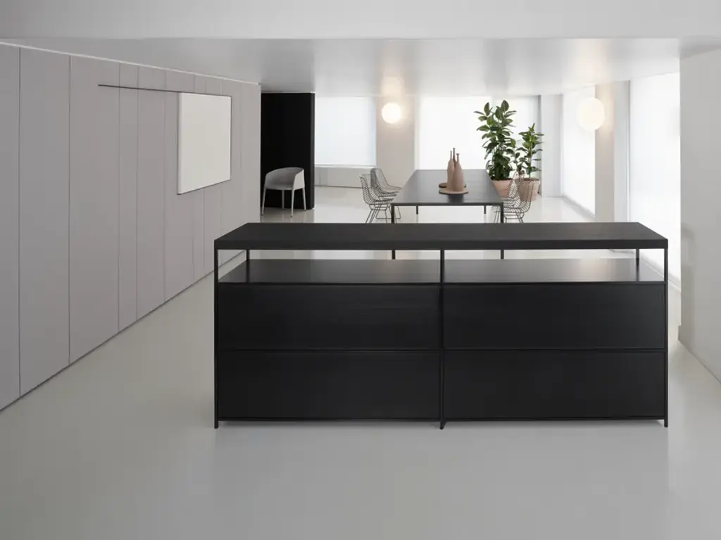 MINIMA 3.0 SIDEBOARD is a functional and multipurpose sideboard collection, to be used both as a partition and as a wall element either for the living or the night area. Minima Sideboard separates, contains and gives space a good rhythm.
