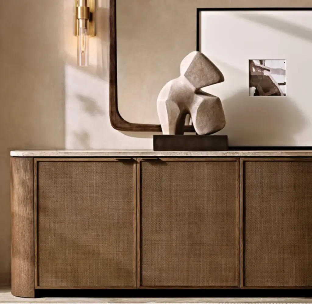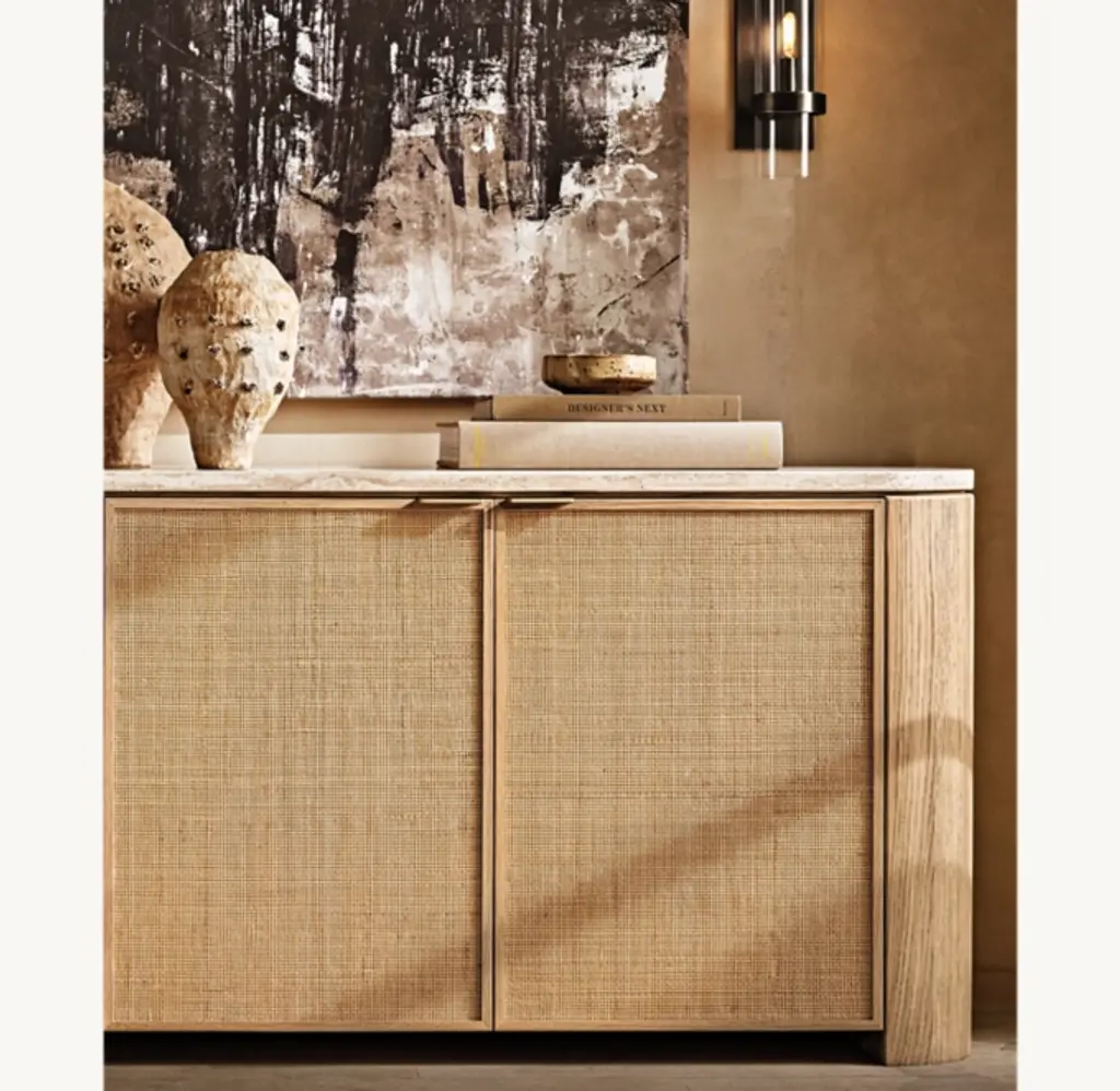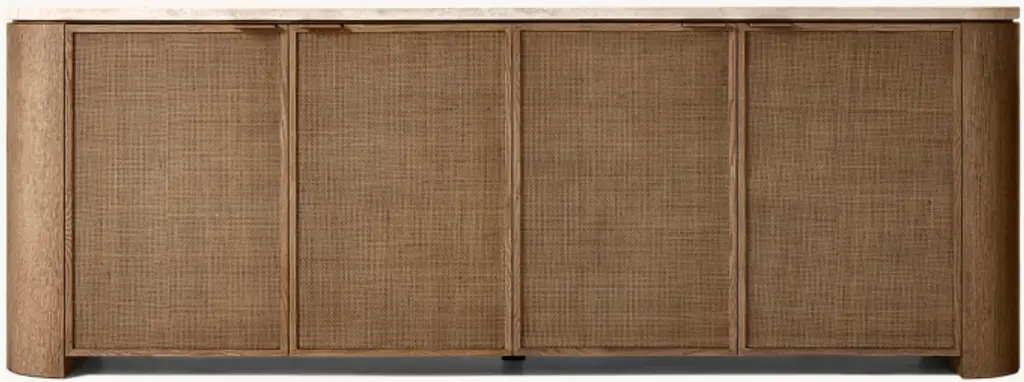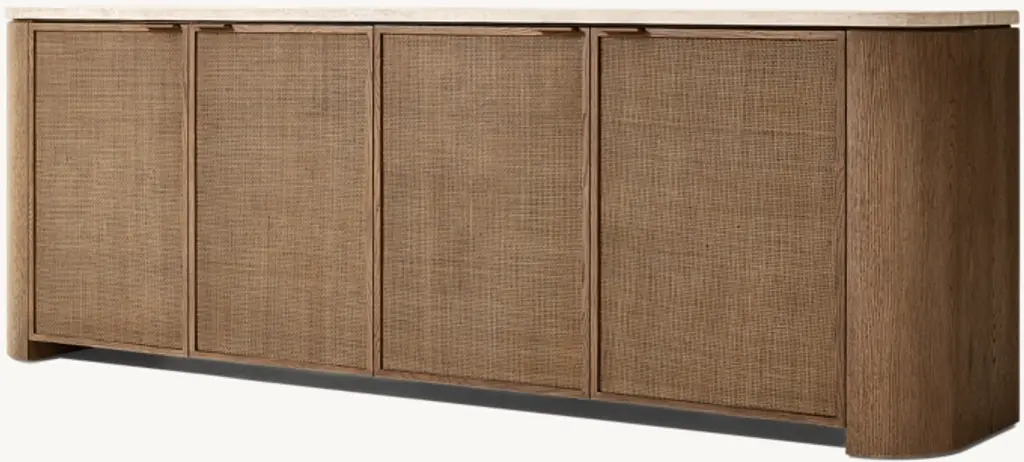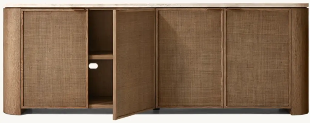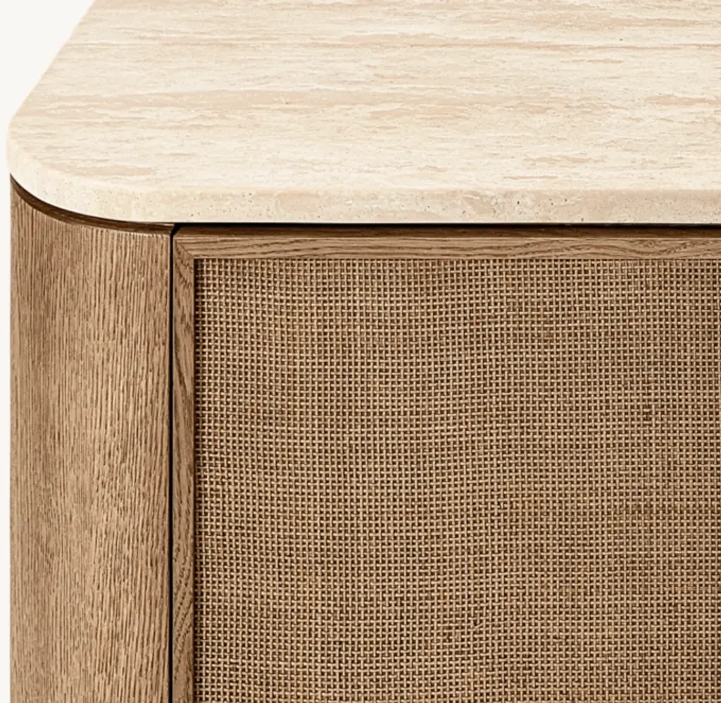 Mizu, designed by Nicholas and Harrison Condos, draws inspiration from the quiet intentionality of Japanese and Scandinavian design. Named after the Japanese word for water, the collection is a meditation on stillness and flow with its minimalist, curved silhouette. Handcrafted of American white oak with a solid Turkish travertine top and woven cane panels, each piece evokes a sense of harmony with nature. SHOP THE ENTIRE COLLECTION