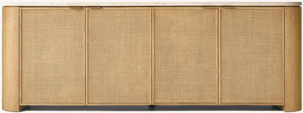 Mizu, designed by Nicholas and Harrison Condos, draws inspiration from the quiet intentionality of Japanese and Scandinavian design. Named after the Japanese word for water, the collection is a meditation on stillness and flow with its minimalist, curved silhouette. Handcrafted of American white oak with a solid Turkish travertine top and woven cane panels, each piece evokes a sense of harmony with nature. SHOP THE ENTIRE COLLECTION
