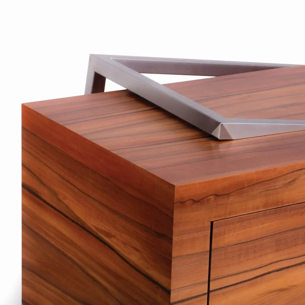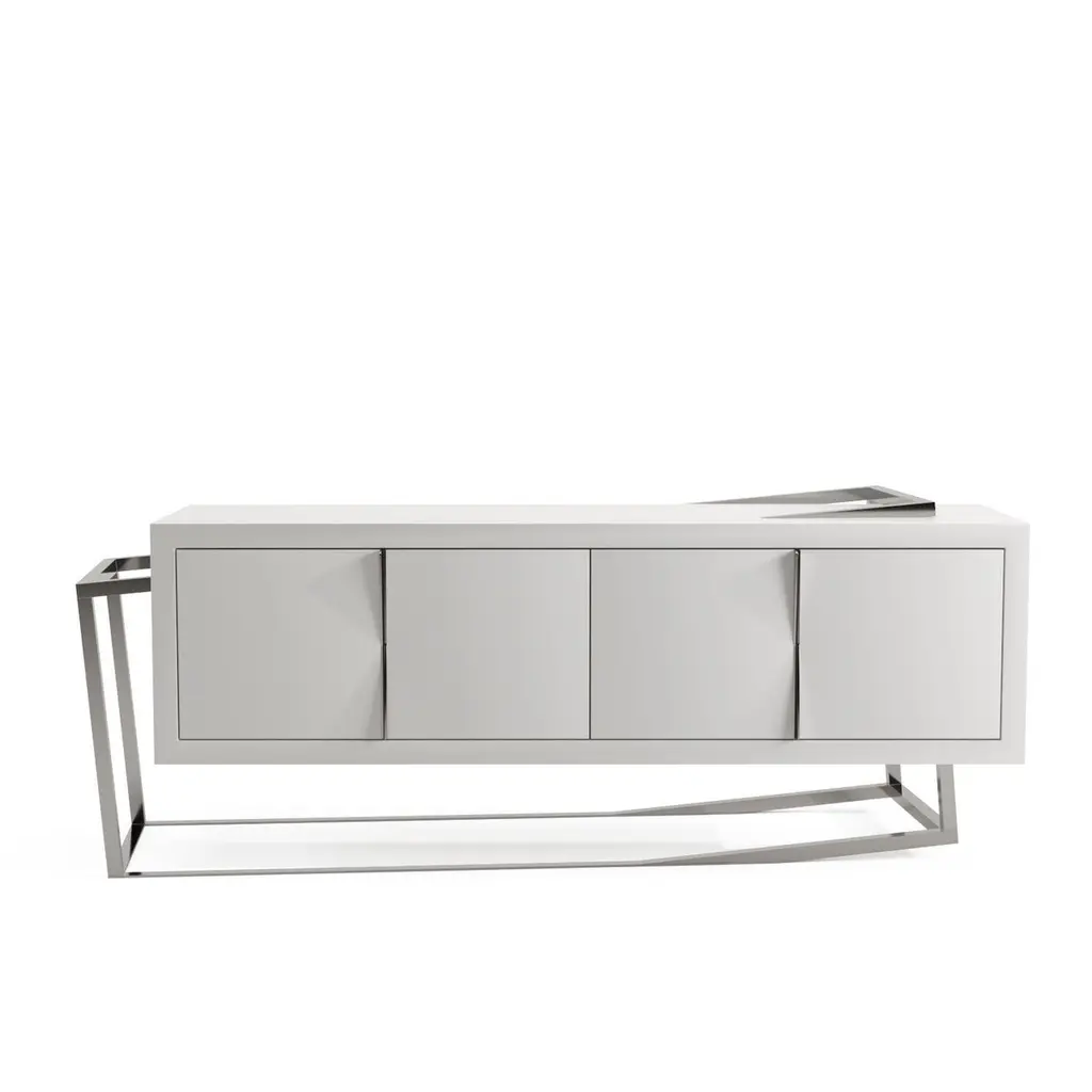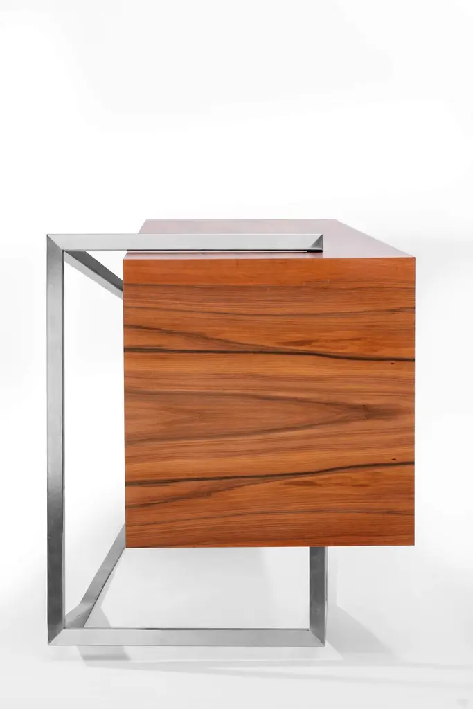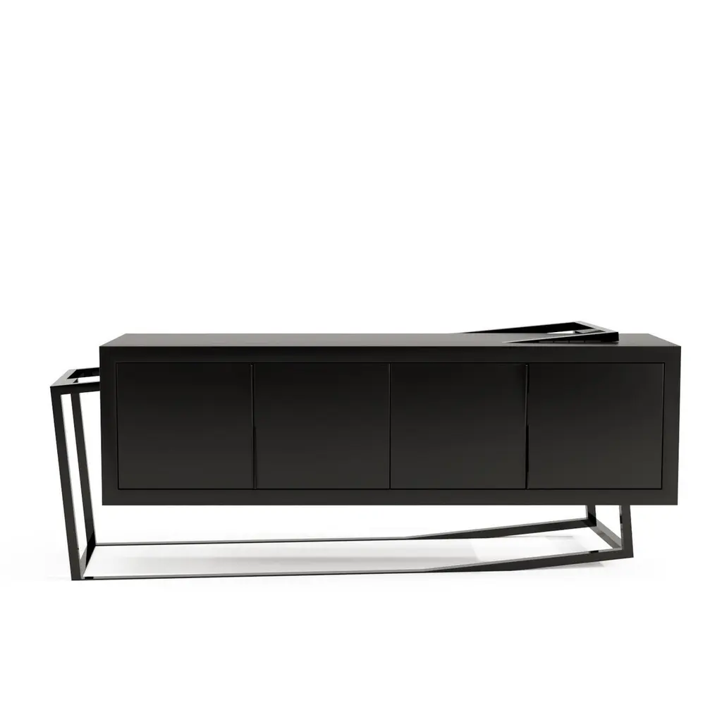 The Credenza Sideboard ExCentric 1.0 is made of tineo wood and brushed stainless steel and can be placed in a dining or office room. Its contemporary and edgy design challenges the perceptions of a usual sideboard. This piece would make the ideal companion to an ExCentric 1.0 Executive Desk.Available in two sizes – medium and large. This listing refers to the medium size. Also, this sideboard can be made in customized options:Structure and handles: Stainless steel (polished or brushed), brass (polished or brushed) or lacquered steel (in any RAL colour).Body: Another lacquer colour (any RAL colour) or wood veneer (walnut, ebony macassar, black oak, ironwood).Interiors: Oak wood veneer.Dimensions: The large sideboard measures 70 x 220 x 77 cm (27.6 x 86.6 x 30.3 in). Custom dimensions are only available after analysis.You can fit the interiors with shelves to store your items by request.Assembled piece. Given the weight and size, it will be delivered in a wooden box packed in bubble wrap.You can try it in your space using Augmented Reality with your mobile phone (available on our website - ExCentric 1.0 Collection).In 2016, it won an "A' Design Award" in the "Furniture, Decorative Items, and Homeware Design" category.This piece is entirely made in Portugal and manufactured artisanally. The author carefully executed or supervised every process step in a small workshop context.Labour of love from Portugal.Designer/Author - Joao Faria/Emotional Objects.Manufacturer - Joao Faria/Emotional Objects.At Emotional Objects, we don't follow trends or fashion. Instead, we create distinct and timeless objects with solid ideas and concepts. Every Emotional Object has a meaningful story behind it. Made to last for generations, we proudly see our objects as future furniture classics that will stand the test of time.Working in Portugal with the best artisans, the distinction between functional and fine art is difficult to find in Joao Faria's work. He uses the finest materials and techniques, but, most importantly, he only makes pieces he would want for himself.Art Furniture, Unique, Tailored, Emotional, Truly Yours.