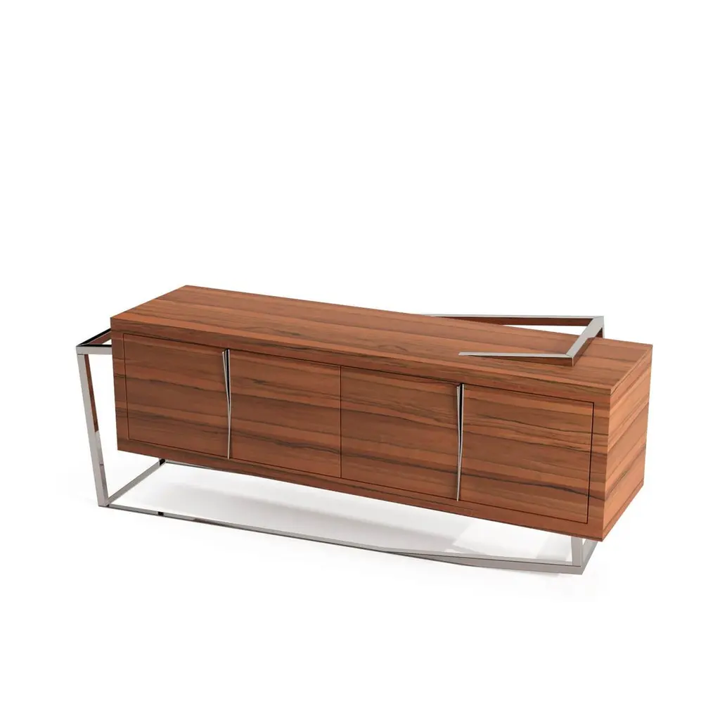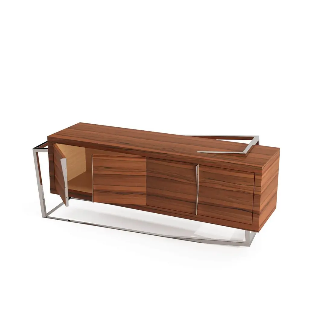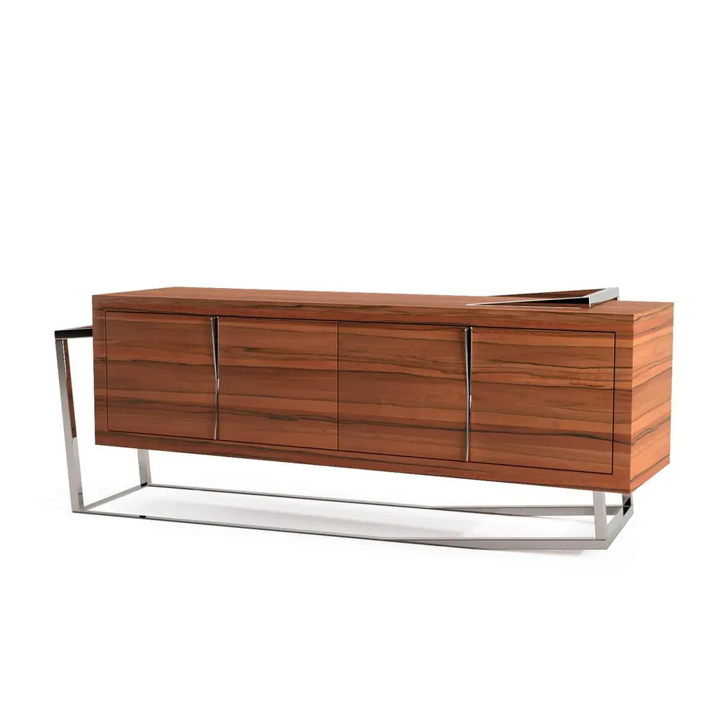 Modern Accent Credenza Sideboard In Tineo Wood & Brushed Stainless Steel