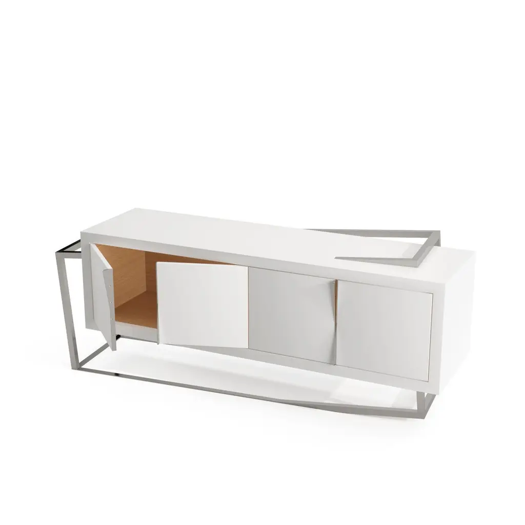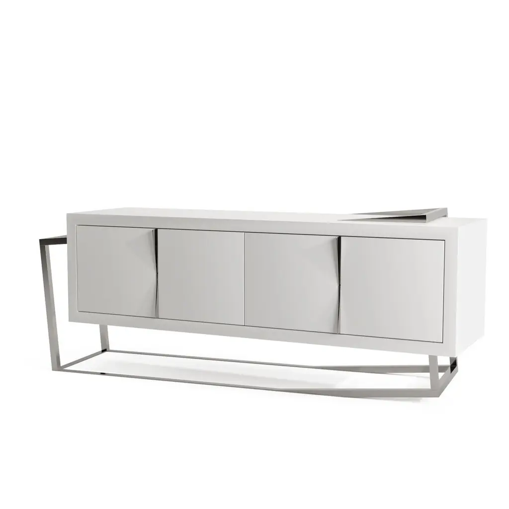 Modern Accent Credenza Sideboard In White Lacquer & Brushed Stainless Steel