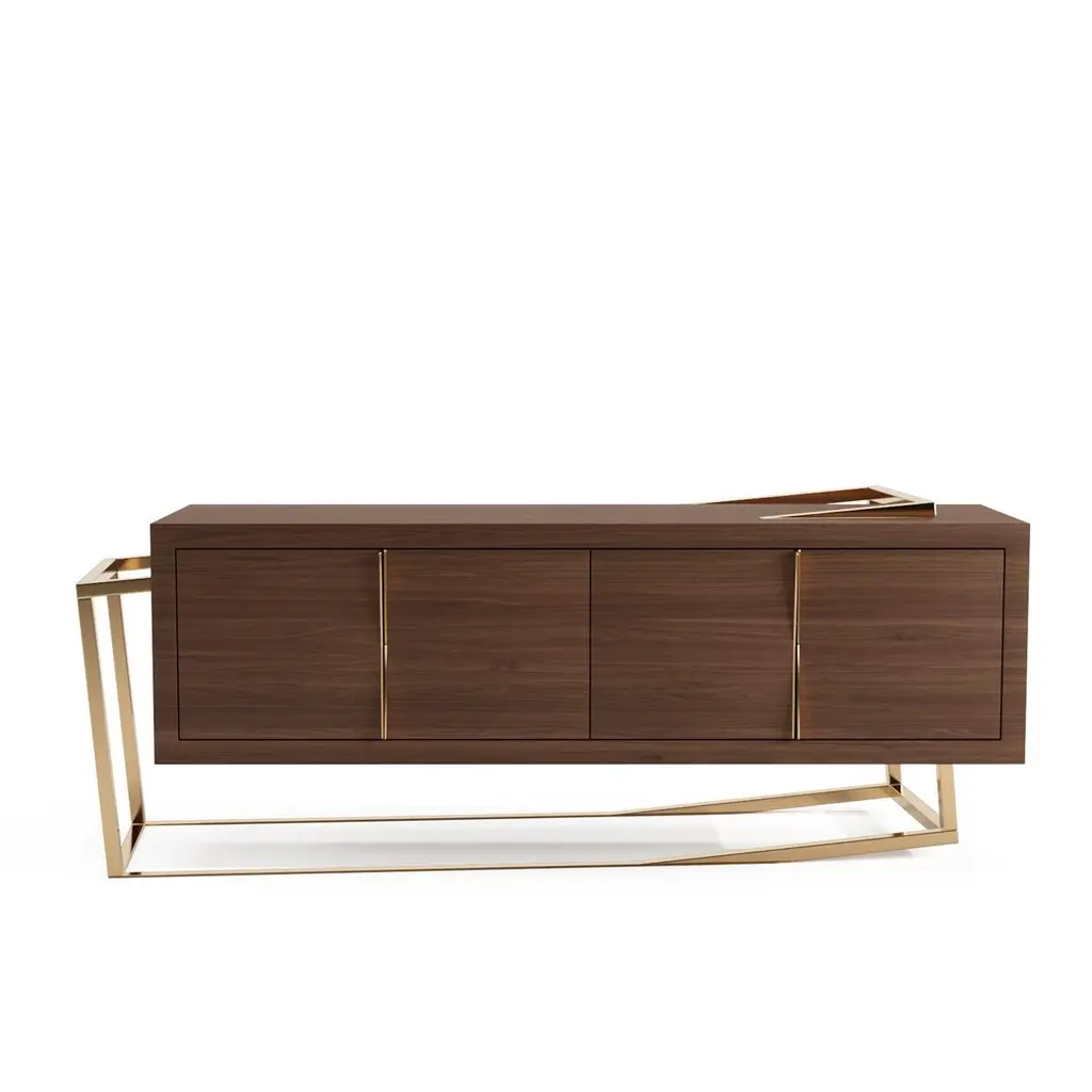 The Credenza Sideboard ExCentric 1.0 is made of white lacquered wood and brushed stainless steel. It can be placed in a dining or office room. Its contemporary, edgy design challenges the perceptions of a typical sideboard. This piece would make the ideal companion to an ExCentric 1.0 Executive Desk.Available in two sizes – medium and large. This listing refers to the medium size. Also, this sideboard can be made in customized options:Structure and handles: Stainless steel (polished or brushed), brass (polished or brushed) or lacquered steel (any RAL colour).Body: Another lacquer colour (any RAL colour) or wood veneer (walnut, ebony macassar, tineo, black oak, ironwood).Interiors: Oak wood.Dimensions: The large sideboard measures 70 x 220 x 77 cm (27.6 x 86.6 x 30.3 in). Custom dimensions are only available after analysis.You can fit the interiors with shelves to store your items by request.Assembled piece. Given the weight and size, it will be delivered in a wooden box packed in bubble wrap.You can try it in your space using Augmented Reality with your mobile phone (available on our website - ExCentric 1.0 Collection).In 2016, it won an "A' Design Award" in the "Furniture, Decorative Items, and Homeware Design" category.This piece is entirely made in Portugal and manufactured artisanally. The author carefully executed or supervised every process step in a small workshop context.Labour of love from Portugal.Designer/Author - Joao Faria/Emotional Objects.Manufacturer - Joao Faria/Emotional Objects.At Emotional Objects, we don't follow trends or fashion. Instead, we create distinct and timeless objects with solid ideas and concepts. Every Emotional Object has a meaningful story behind it. Made to last for generations, we proudly see our objects as future furniture classics that will stand the test of time.Working in Portugal with the best artisans, the distinction between functional and fine art is difficult to find in Joao Faria's work. He uses the finest materials and techniques, but, most importantly, he only makes pieces he would want for himself.Art Furniture, Unique, Tailored, Emotional, Truly Yours.