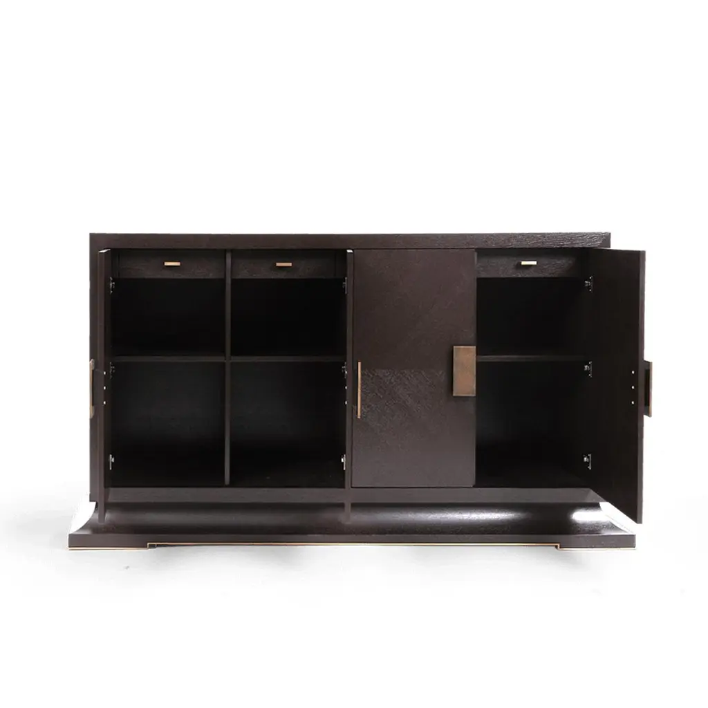 Modern Brown Oak Sideboard Credenza Cabinet With Brass Handles