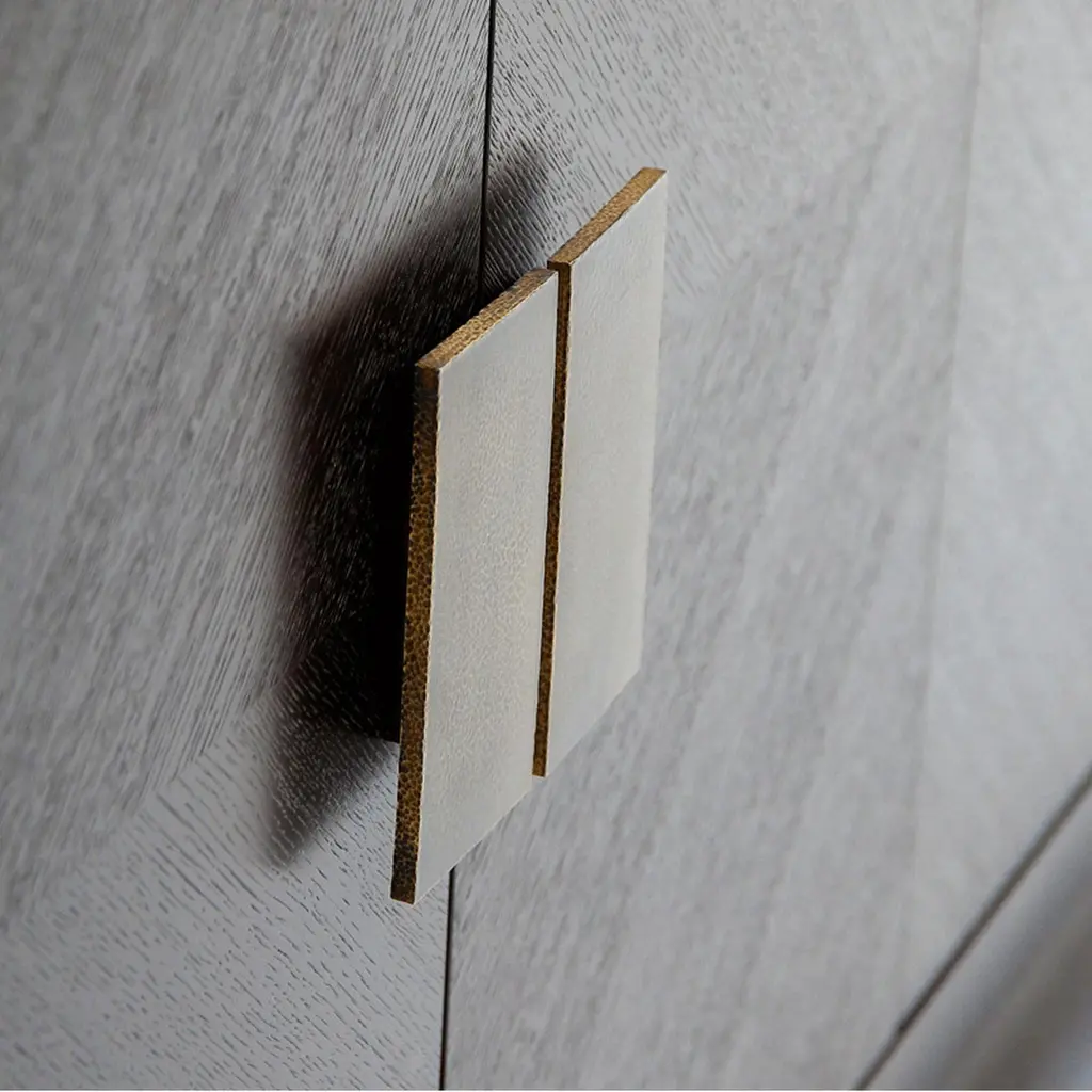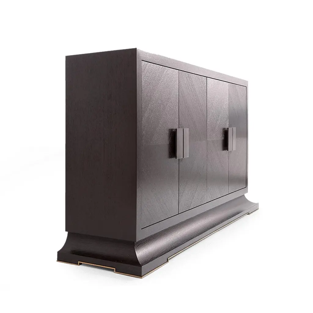 A beautiful sideboard with oakwood inlaying doors, and stunning aged brass handles. The oakwood inlaying is made in a special marquetry technique and finished with 2 coats of anti scratch rich dark brown paint. Combining luxury design with brilliant craftsmanship, this is a timeless furniture creation. Sideboard Bloom is beautifully crafted by our best craftsmen. If you looking for an amazing piece to add to your home, this is it.CUSTOMIZATION AVAILABLE - Different colors, materials, finishes and customized sizes available upon request. If you’re interested in a customization that is not currently listed, please contact Kanttari.BESPOKE – We do create individual and fully customized designs. Please contact Kanttari to discuss your specifications.MANUFACTURING – we fully hand-craft each piece in our workshop by our best craftsmen. Production lead time may take up to 9 - 12 weeks, bespoke items may be longer – depending on the exact specification and availability of materials chosen. For more information please contact Kanttari.SHIPPINGCarefully packaged in wooden crate.Fully insured.Request a customized shipping quote.