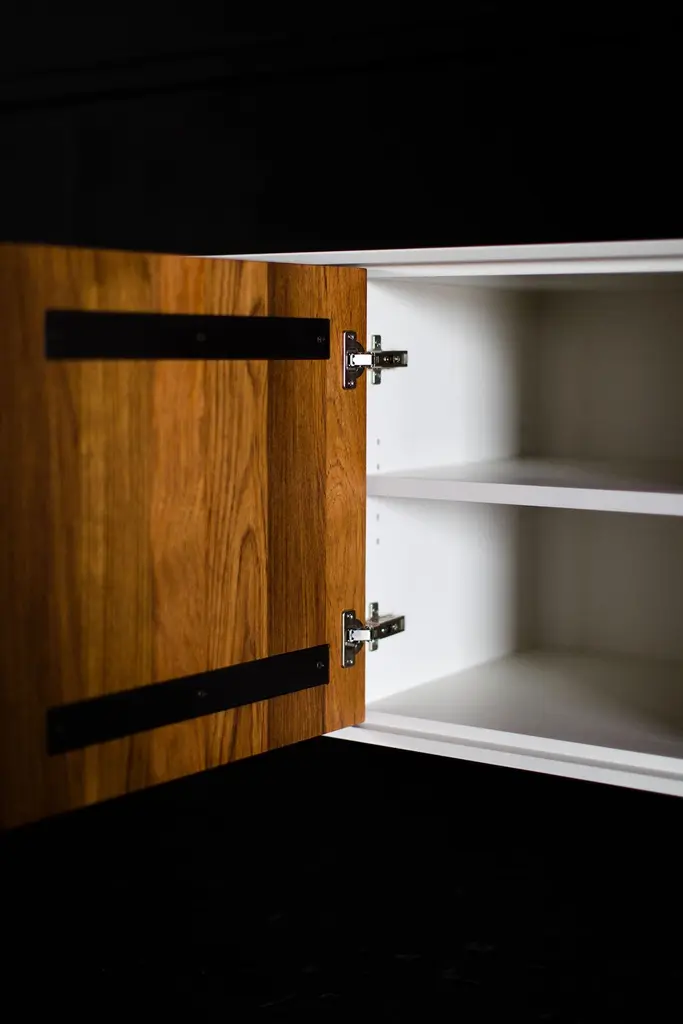Modern teak credenza - 1909 - Craft Associates FurnitureThis modern teak credenza from the Cambre Collection for Craft Associates Furniture is expertly crafted. The legs and door fronts are constructed by artisans from solid teak. The frame is solid maple with lacquer. This piece can be customized in size, wood species for door and legs and custom lacquer finish for the frame. Craft Associates Furniture is proud each piece is made in the US. We strive to craft a product that will Stand the test of time. We use the best materials and have the best craftsman in the business. We Stand 100% behind our product. All pieces are available in walnut, teak or ziricote "Modernism means freedom - freedom to mix, to choose, to change, to embrace the new but to hold fast to what is good." - Edward Wormley.designer: Laura TrenchardManufacturer: Craft Associates® Modern FurniturePeriod/Model: Mid Century ModernSpecs: Teak, MapleDimensionsH: 30.25 (76.84cm)L: 78 (198.12cm)D: 18 (45.72cm).