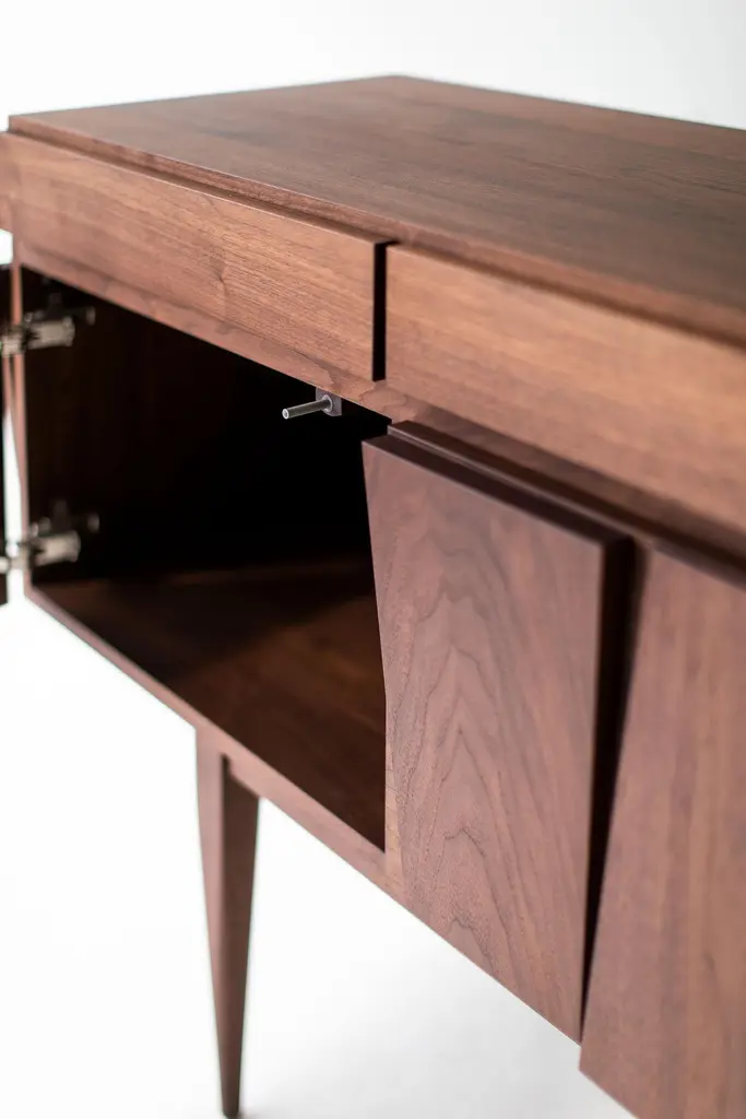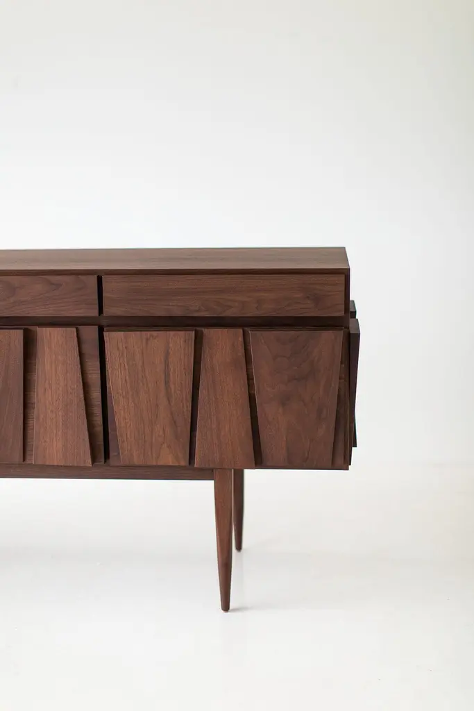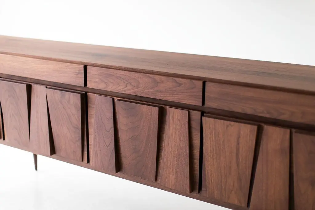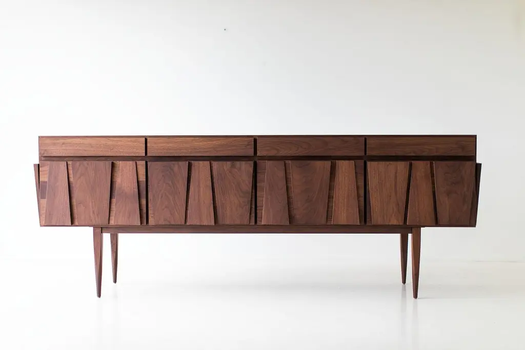 Modern Credenza - 1607 - Craft Associates® Furniture is expertly crafted. The base is constructed by hand from hard wood and not machine. The walnut is then shaped by artisans and finished with a hand applied oil. This piece is also available in urethane.Craft Associates® Furniture is proud each piece is made in the US. We strive to craft a product that will stand the test of time. We use the best materials and have the best craftsman in the business. We stand 100% behind our product.All pieces are available in Rosewood, Teak or Ziricote for additional cost. "Modernism means freedom - freedom to mix, to choose, to change, to embrace the new but to hold fast to what is good." - Edward Wormleydesigner: Craft Associates®Manufacturer: Craft Associates® Modern FurniturePeriod/Model: Mid Century ModernSpecs: Solid WalnutDimensionsH: 30.5 (77.47cm)L: 92.25 (234.31cm)D: 19.5 (49.53cm).
