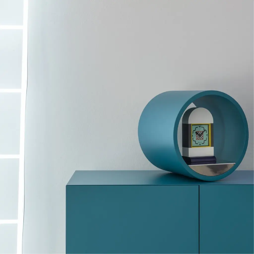 Add a touch of sophistication to your space with the Giunone sideboard by Mogg. Its wood structure comes in a variety of sleek colors or choose a heat-treated larch finish for added warmth. The cylindrical volumes and decorative open element make a statement of luxury. Four doors with internal glass shelves provide ample storage.