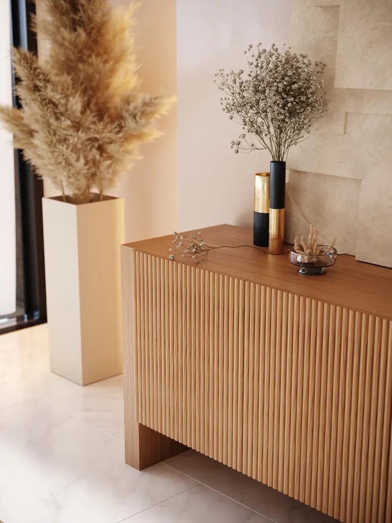 Modern Faro Sideboard Made With Ribbed Doors In Walnut, Handmade By Stylish Club