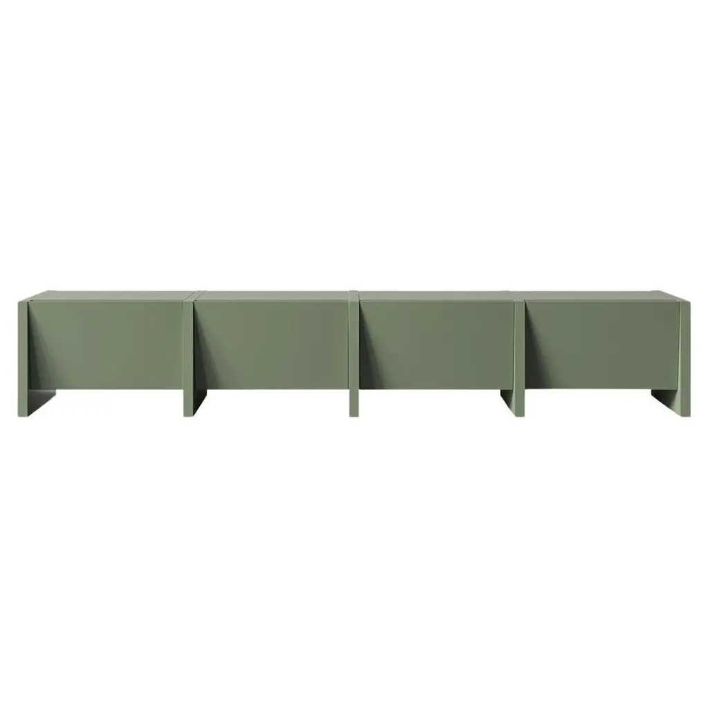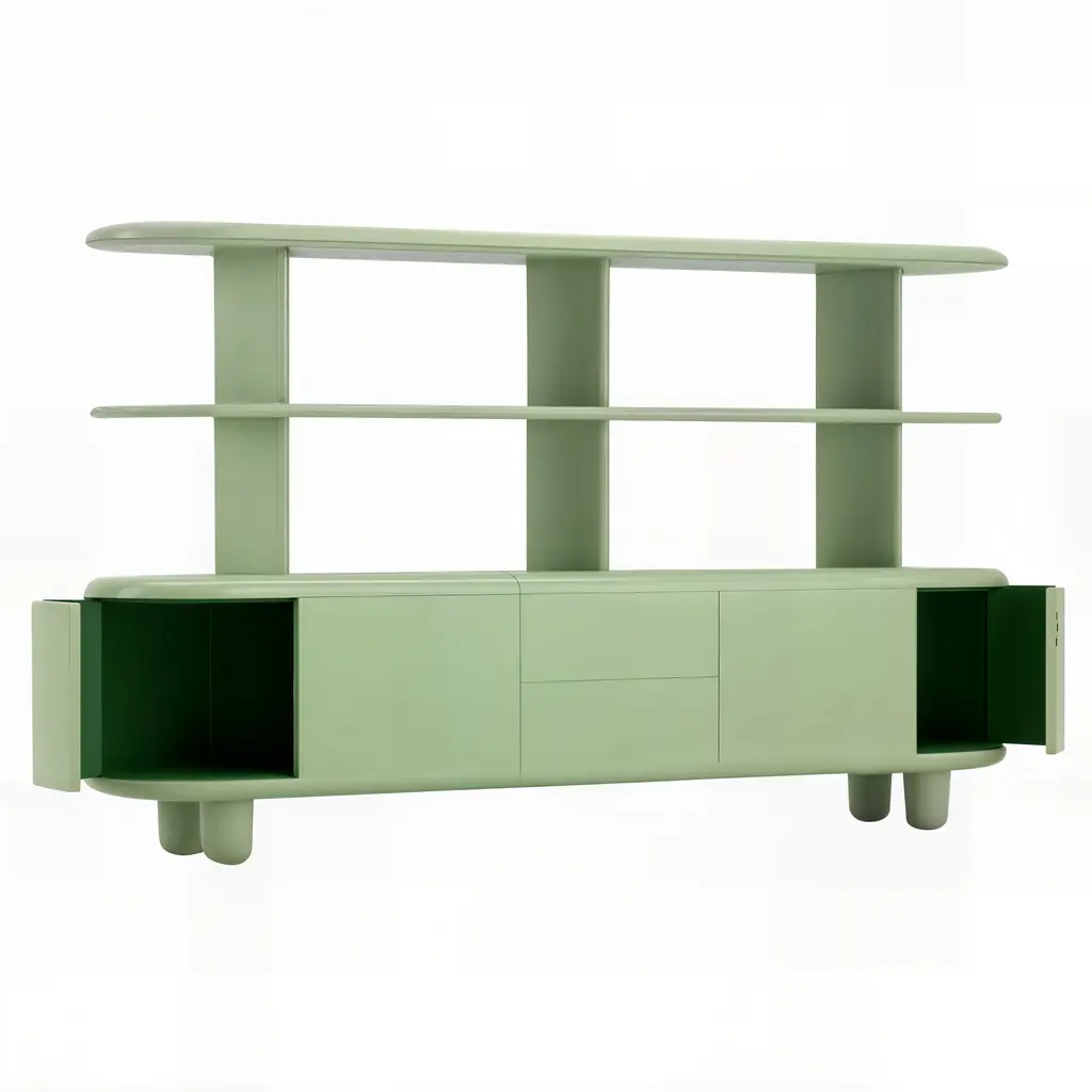 Modern Green & Light Green Wood Sideboard 4 Doors + Drawers by Jaime HayonManufactured in Spain.Materials and finishes: External finish and matte lacquered interior finish. Legs made from solid alder wood, gloss lacquer finish. Horizontal shelving and vertical bracket supports in MDF, gloss lacquer finish. Drawer units interior structure in MDF, matte lacquer finish.Dimensions: D 50 cm x W 234 cm x H 147 cmInspired by one of mankind’s greatest achievements, the latest member of the Explorer family is crafted with space-age curves and the highest precision. The Explorer series comes straight from Hayon’s own cosmos—his drawings—into light-hearted but elegant objects, finished in playful, beautiful glosses. For many years, Jaime Hayon has designed pieces of furniture with simple, organic forms—in anticipation of children running around their edges, also just because they are elegant and beautiful. The latest member of the Explorer family uses the same clean curves and playful colours as its predecessors: a dining table, several side tables, and multiple vases. A family that comes in an ever-expanding range of sizes and colour combinations, a perfect addition to any living space. Important information regarding color(s) of products:Actual colors may vary. This is due to the fact that every computer monitor, laptop, tablet and phone screen has a different capability to display colors and that everyone sees these colors differently. We try to edit our photos to show all of our products as life-like as possible, but please understand the actual color may vary slightly from your monitorImportant information regarding image of products:The item that it selling is on the first image.