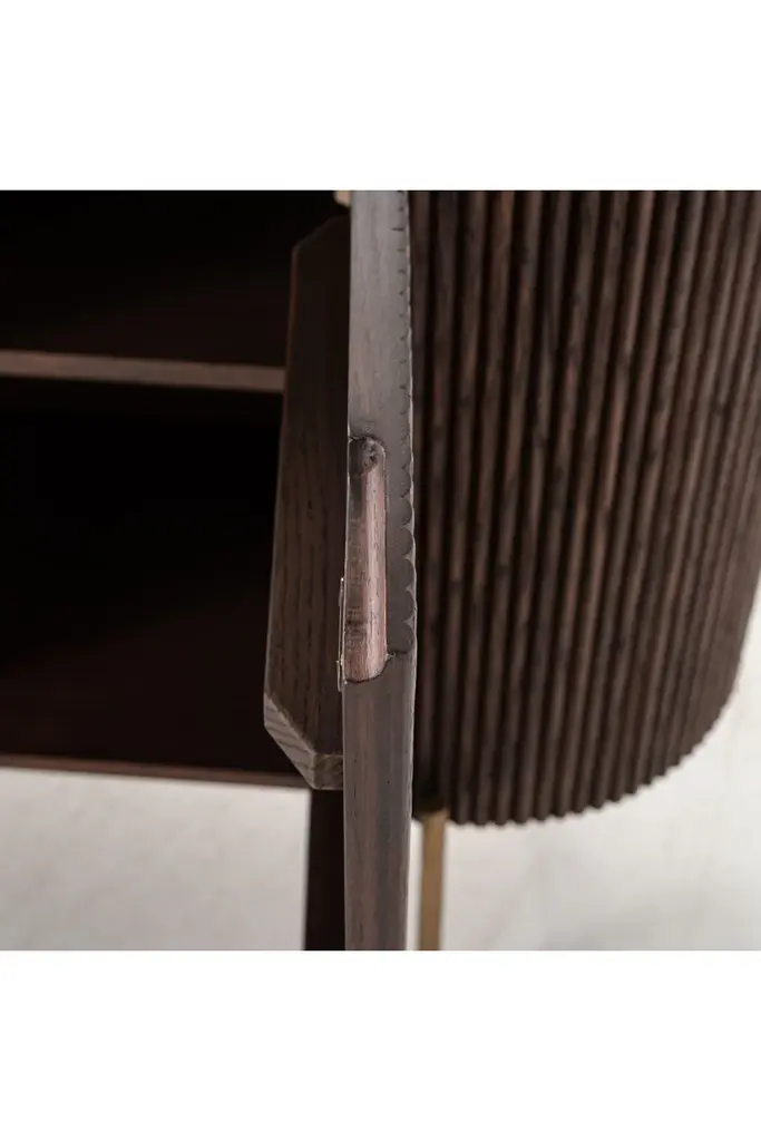 A modern minimalist sideboard that doesn't compromise on style. Barkley by Richmond Interiors features three secret doors enclosing shelved storage. It flaunts an oblong white faux marble top and slatted oak body and golden metal legs. This sideboard evokes clean Asian home aesthetics that easily makes a fine feature in any room. aux marble