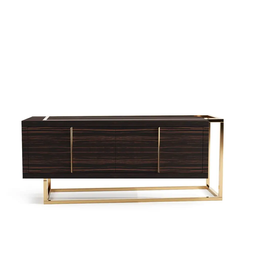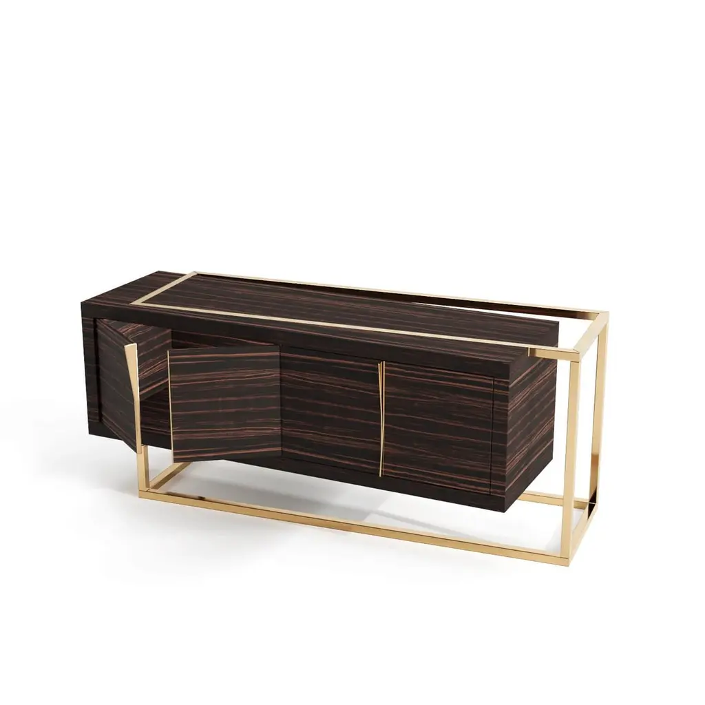 The Credenza Sideboard ExCentric 2.0 listed here is made of tineo wood and brushed stainless steel. However, we can produce this in customised options: Structure and handles: Stainless steel (polished or brushed); brass (polished or brushed).Body: Another kind of wood (walnut, ebony macassar, black oak, ironwood).Interiors: Oak wood. Shelves are available by request.Custom dimensions are only available after analysis.Perfect for contemporary living spaces or office rooms, its elegant and sophisticated design makes it the ideal companion to an ExCentric 2.0 Executive Desk.Assembled piece. Given the weight and size, it will be delivered in a wooden box packed in bubble wrap.You can try it in your space using Augmented Reality with your mobile phone (it's available on our website: ExCentric 2.0 Collection).This piece is entirely made in Portugal and manufactured artisanally. The author carefully executed or supervised every process step in a small workshop context.Labour of love from Portugal.Designer/Author - Joao Faria/Emotional Objects.Manufacturer - Joao Faria/Emotional Objects.At Emotional Objects, we don't follow trends or fashion. Instead, we create distinct and timeless objects with solid ideas and concepts. Every Emotional Object has a meaningful story behind it. Made to last for generations, we proudly see our objects as future furniture classics that will stand the test of time.Working in Portugal with the best artisans, Joao Faria's work is difficult to distinguish between functional and fine art. He uses the finest materials and techniques, but most importantly, he only makes pieces he would want for himself.Art Furniture, Unique, Tailored, Emotional, Truly Yours.