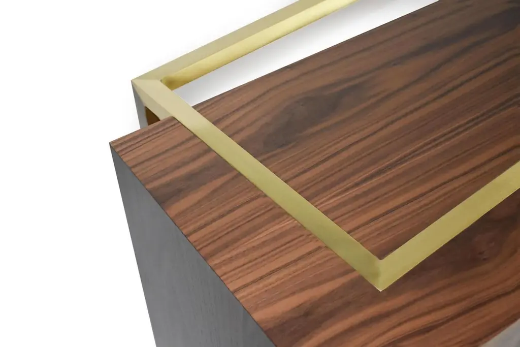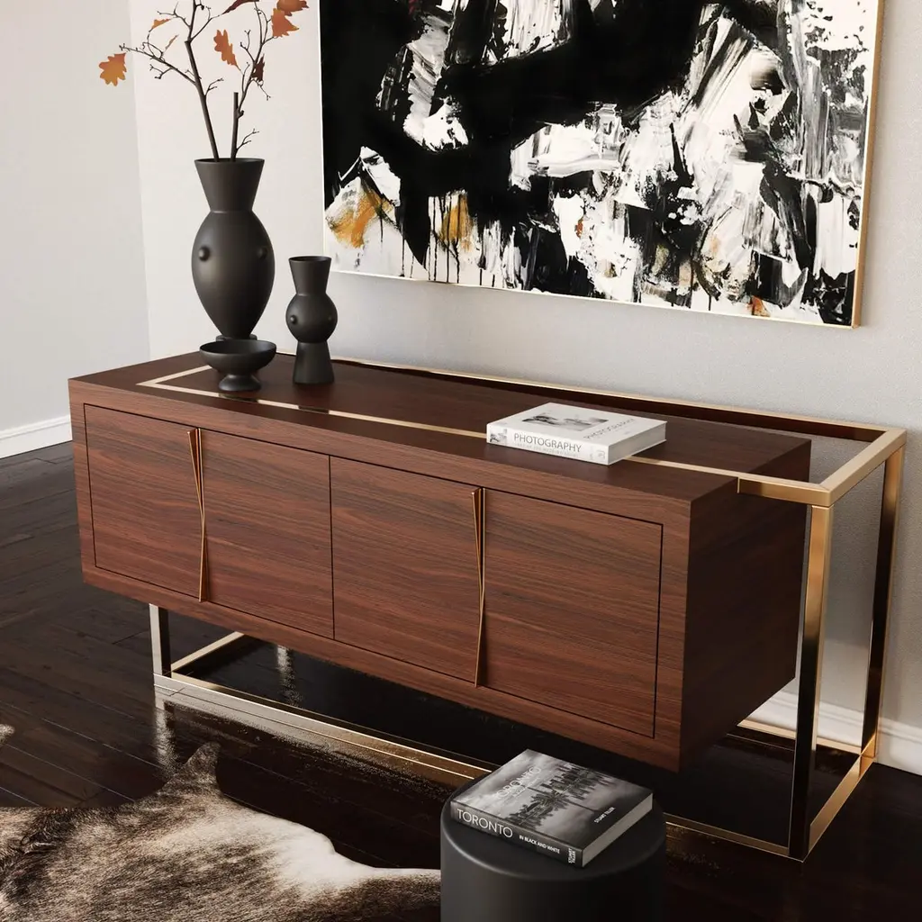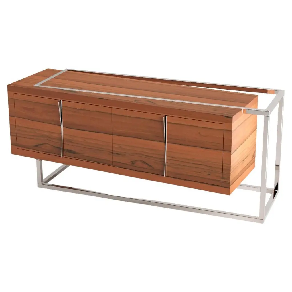 Modern Minimalist Credenza Sideboard In Tineo Wood And Brushed Stainless Steel