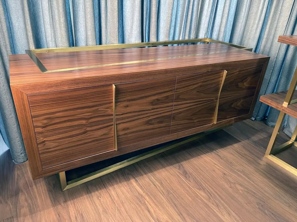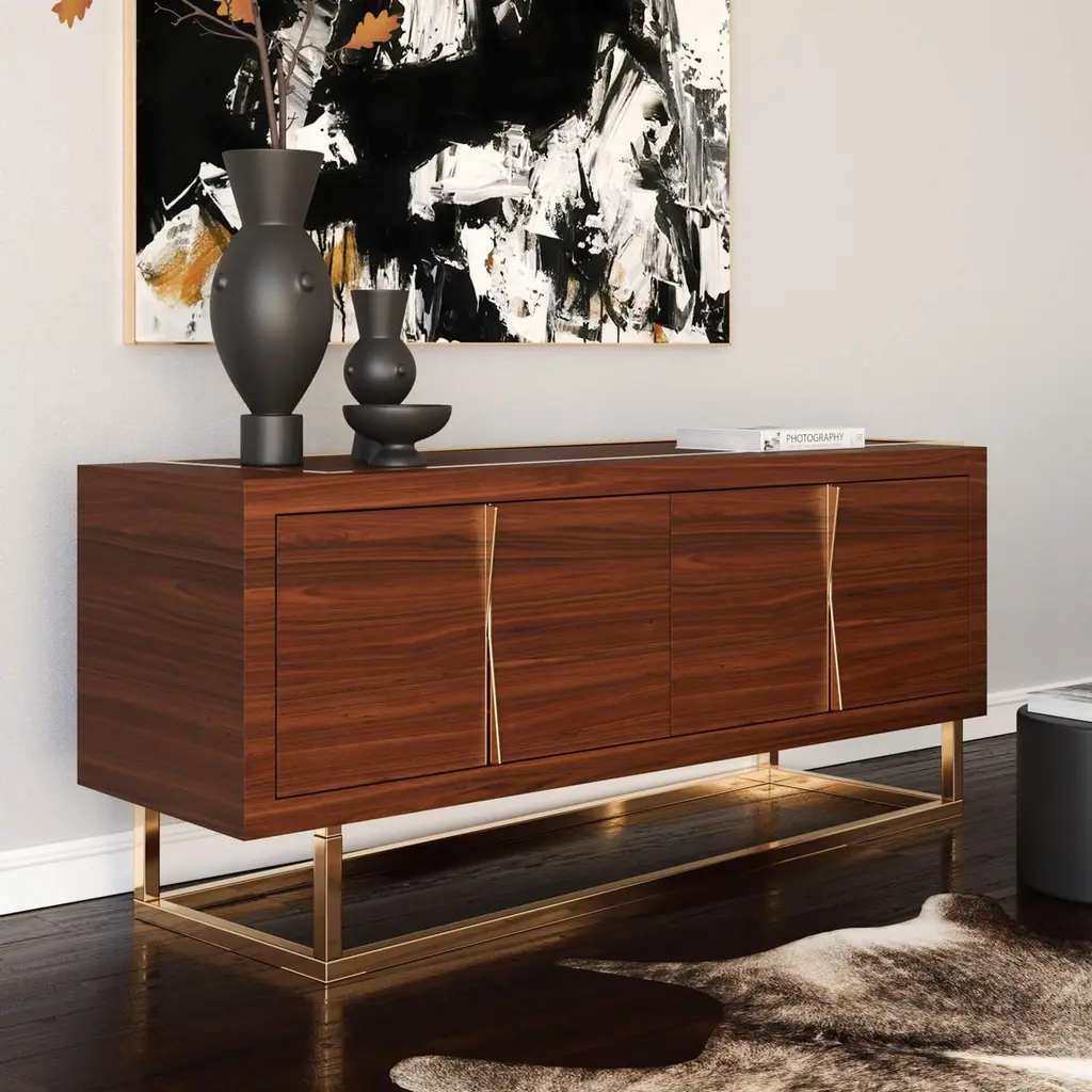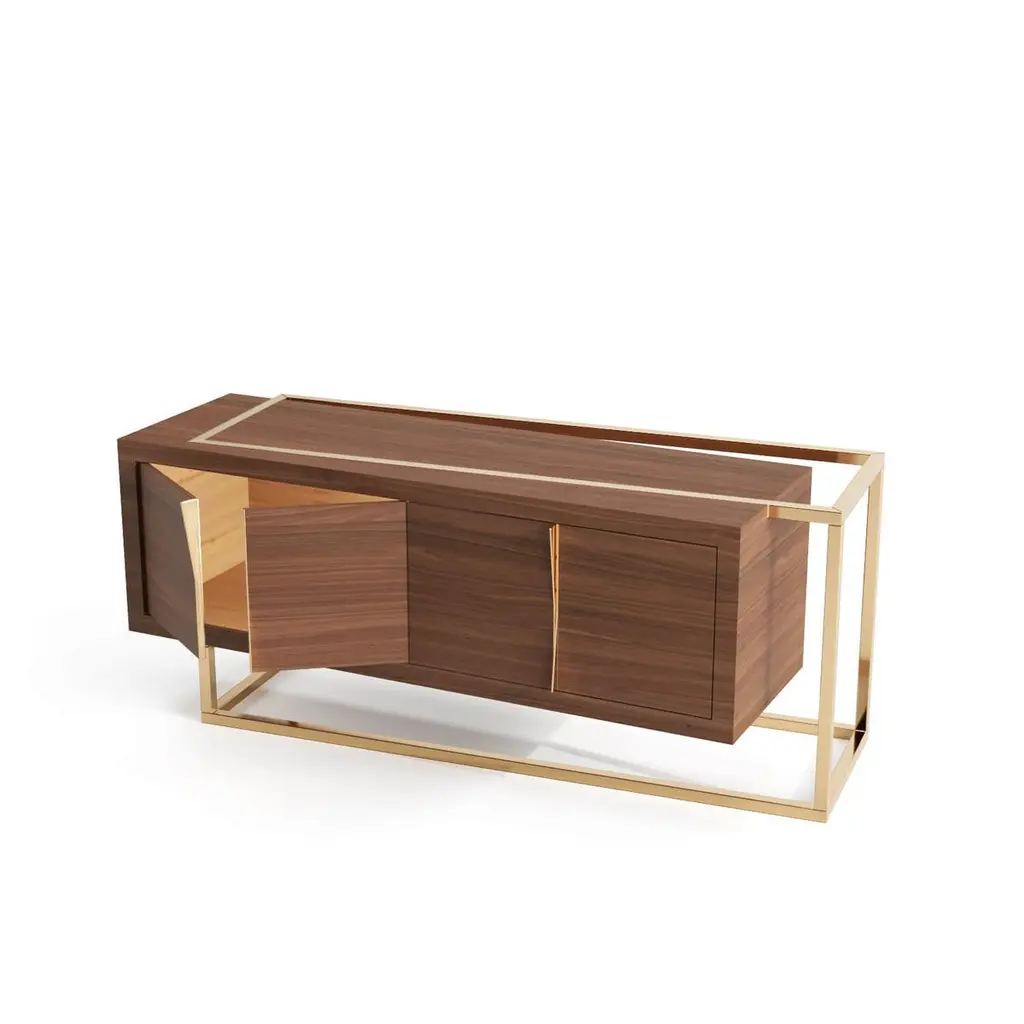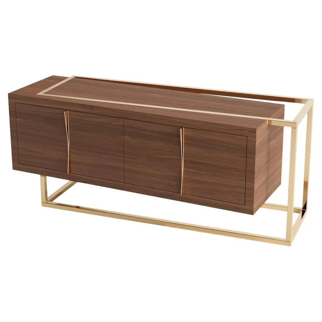 Modern Minimalist Credenza Sideboard In Walnut Wood And Brushed Brass