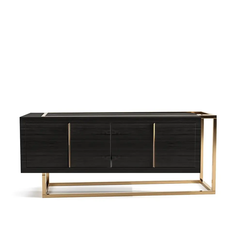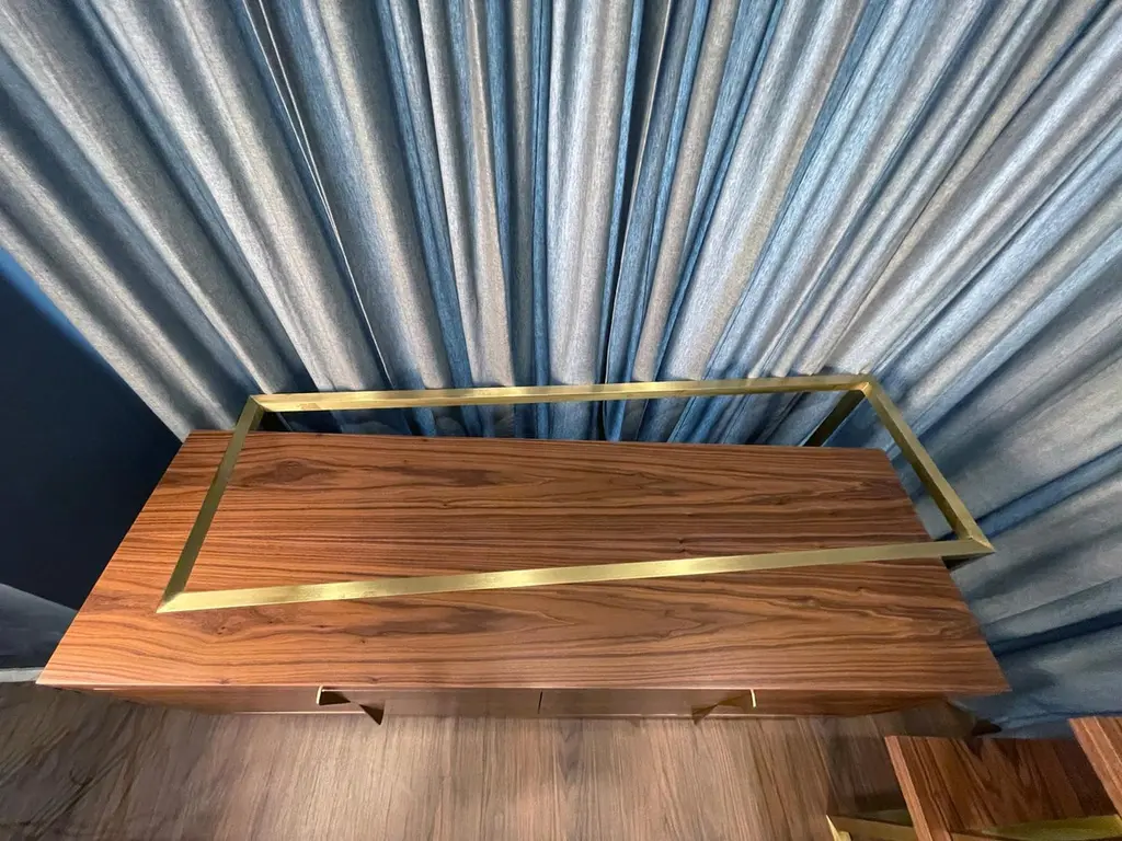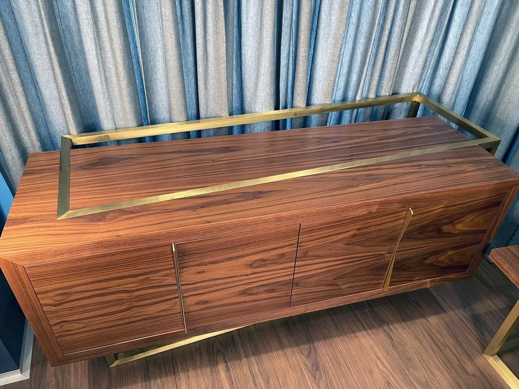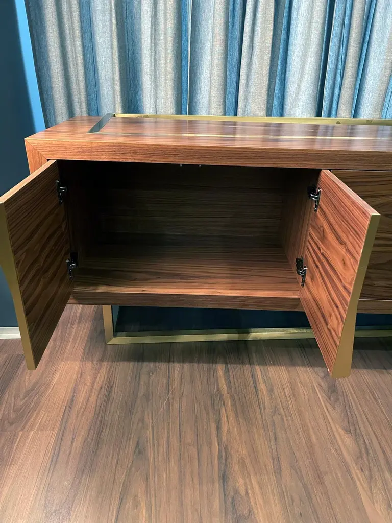 Modern Minimalist Credenza Sideboard In Walnut Wood And Brushed Brass