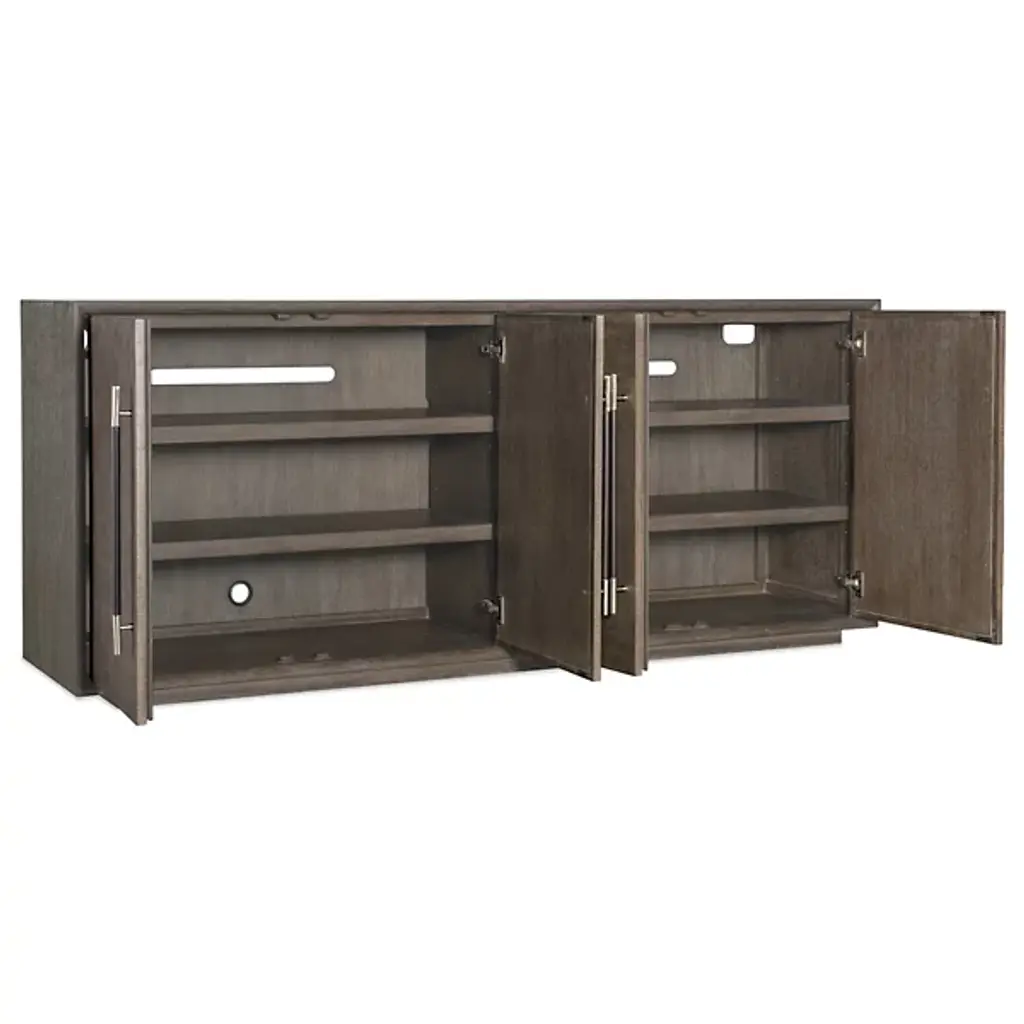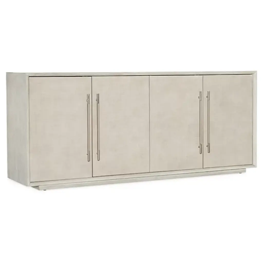 The Modern Mood Sideboard from Hooker Furniture blends soft, contemporary style with thoughtful function. Its clean lines and substantial form are paired with four soft-close drawers featuring magnetic catches. Inside, there are adjustable shelves, wire management, a ventilated back, and even a built-in three-plug outlet, perfect for modern living. Inspired by decades of design, this timeless piece offers a versatile aesthetic that effortlessly adapts to your space and lifestyle.