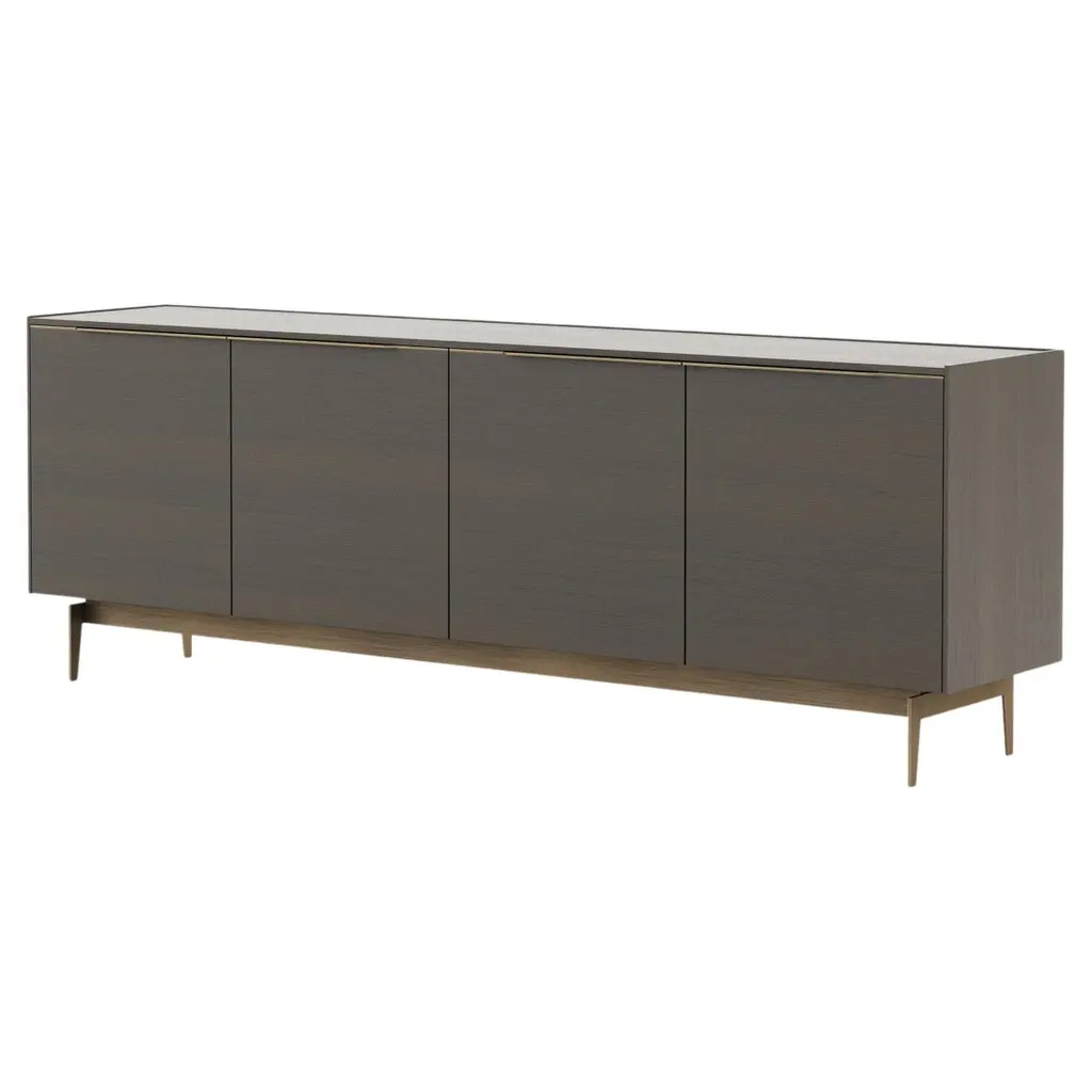 The Slender collection was developed with slim and elongated lines. The traces of this collection extend along the pieces, creating a sense of involvement between all the elements.The combination of the four bronze mirror doors with mate walnut wood structure and bronze iron base delivers a modern style. With its simple lines, the Slender sideboard will make an impact in any contemporary or more classic dining area. The mirror on the Slender sideboard doors add an extra dimension to the dining room. Ideal in a more contemporary look, this piece offers the storage you need for this space. The Slender collection was developed with slim and elongated lines. The traces of this collection extend along the pieces, creating a sense of involvement between all the elements.As the product can be personalised, the image of the presentation is merely illustrative.NotesLacquered metal or others metals - Price on requestPossibility to customize top with marble or glass - Price on request