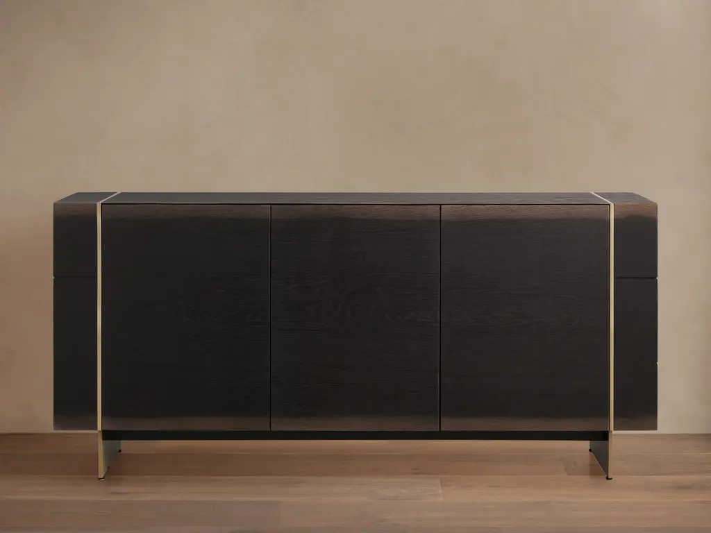 Modern Slender Sideboard Made With Oak And Brass, Handmade By Stylish Club