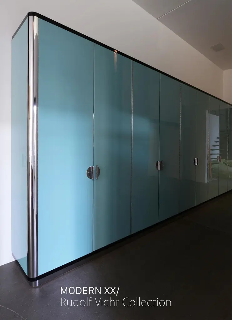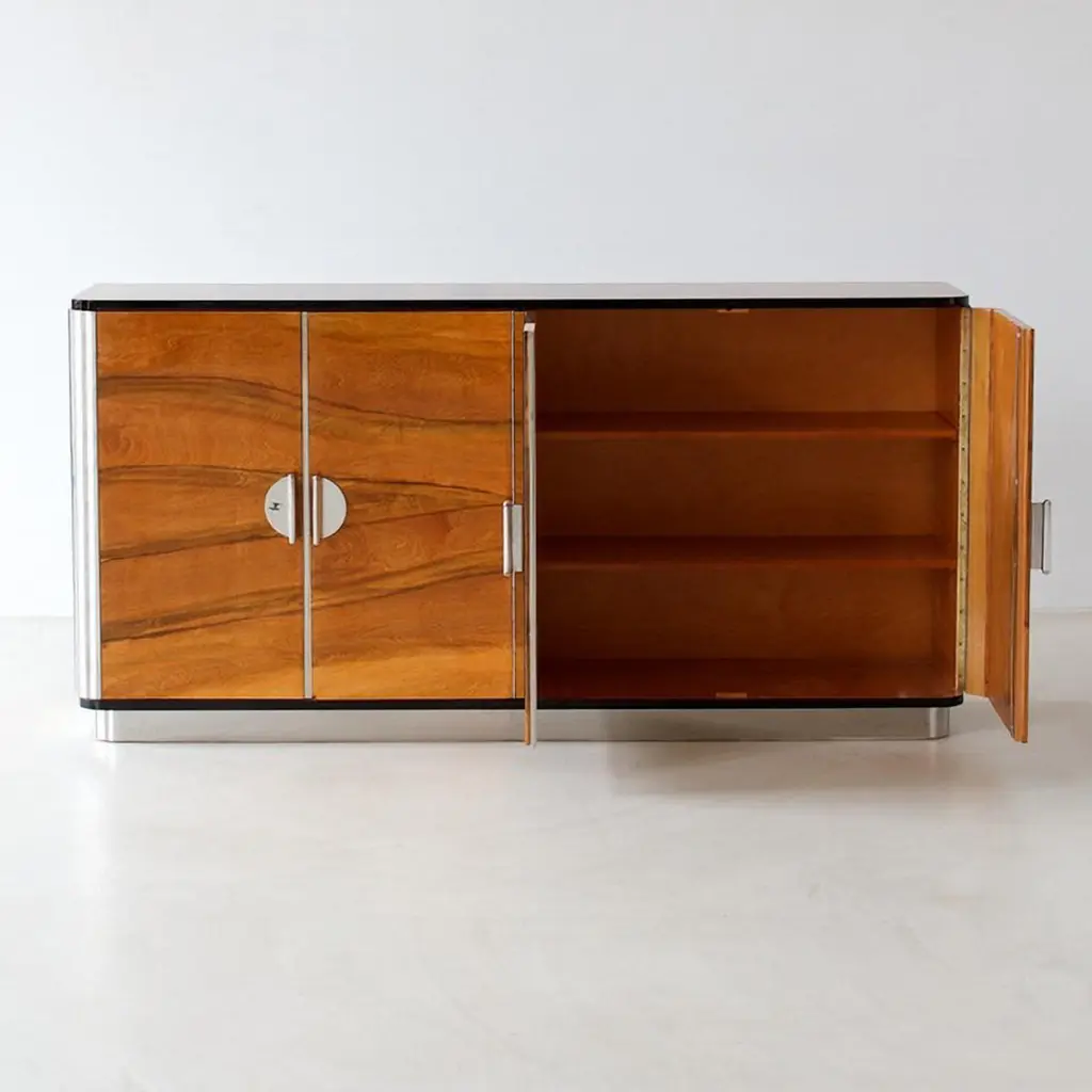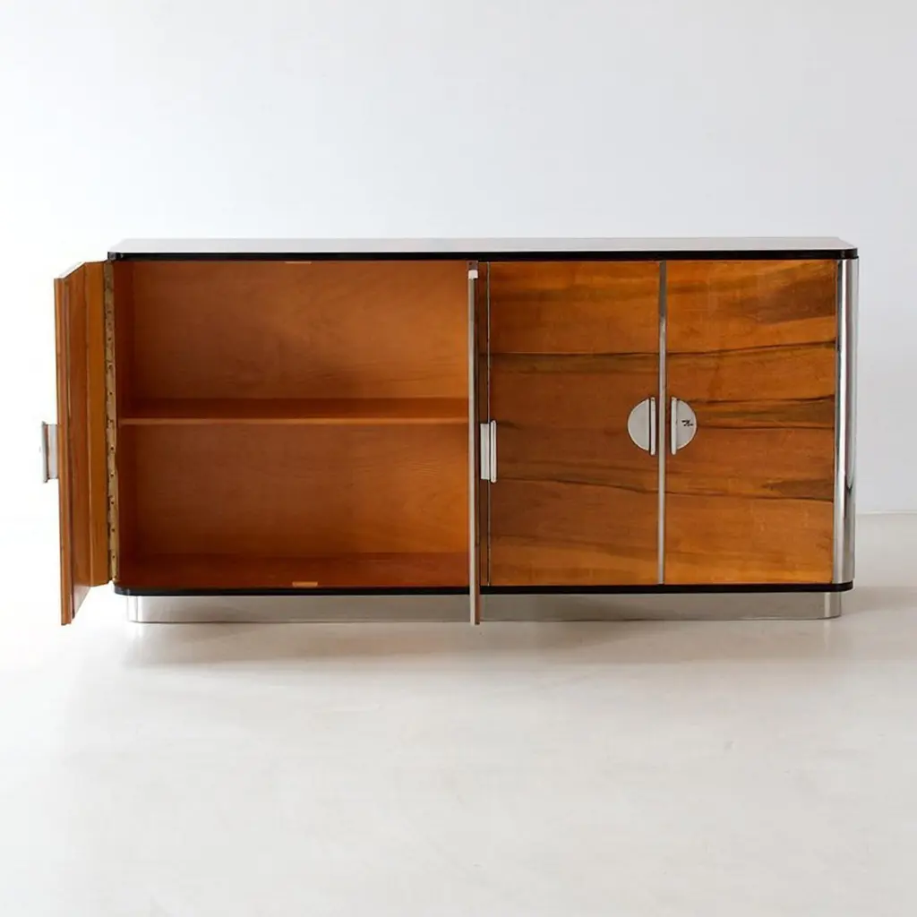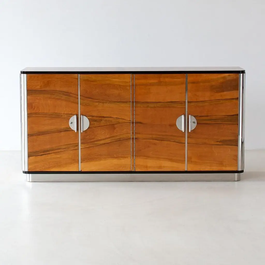 Modernist Four Door Sideboard, Veneered Wood, Chrome Plated Metal, Customizable