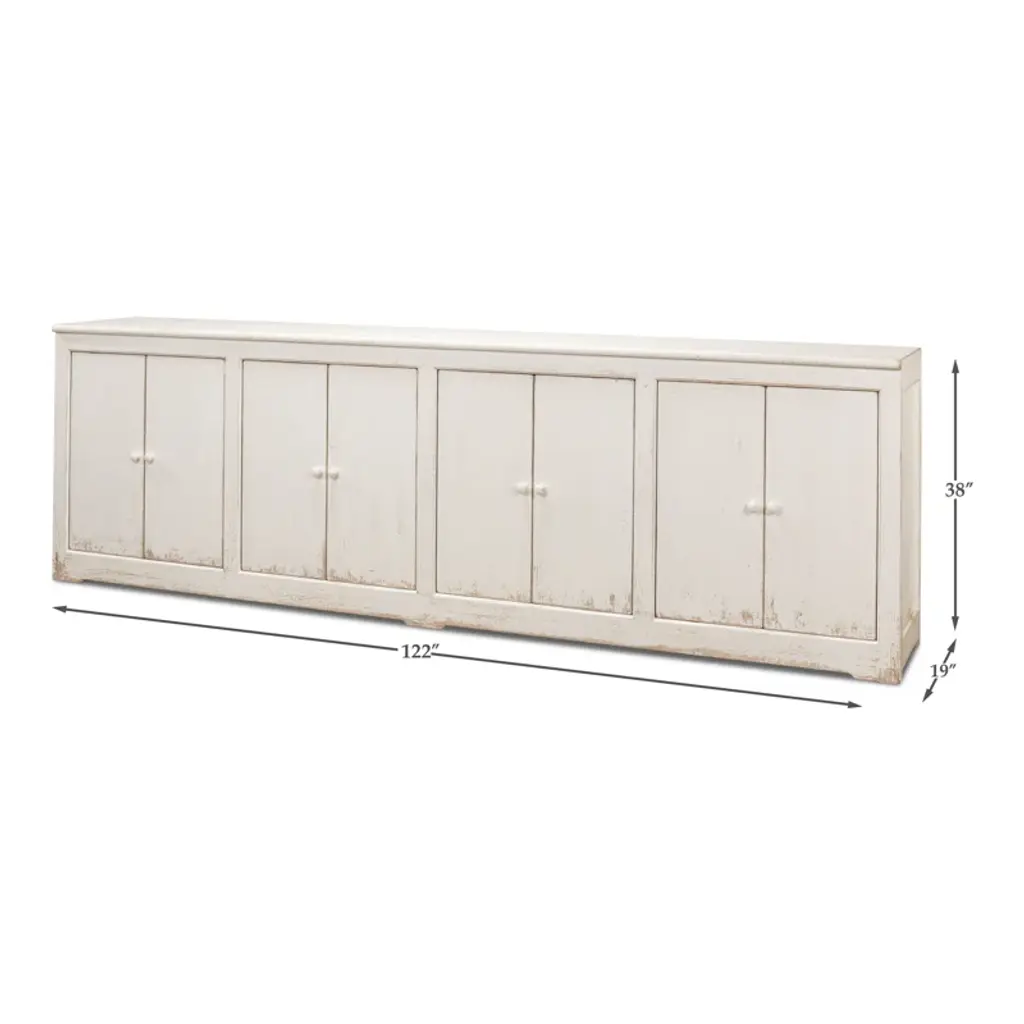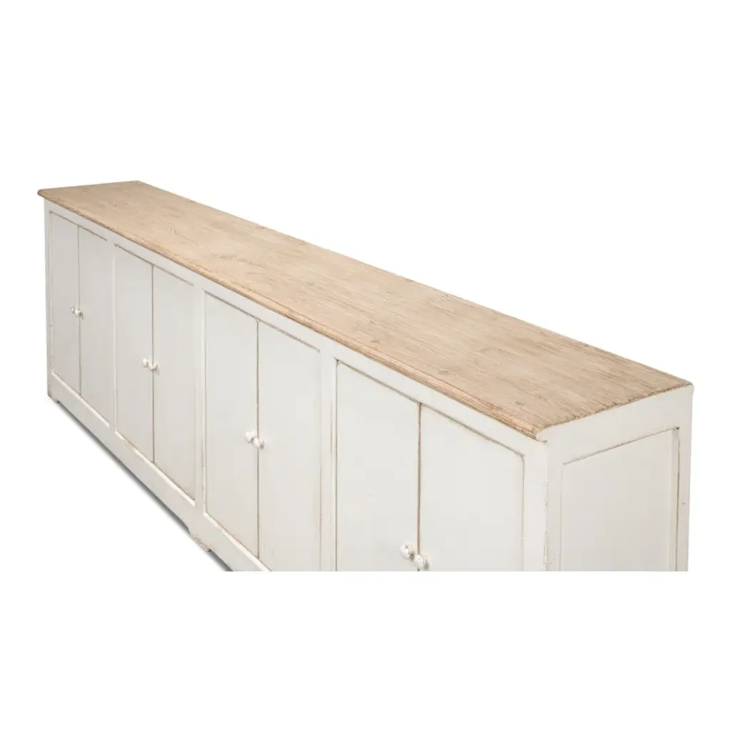Pine, Ant.White Wash, Natural Top - 8 Doors, 4 Removable Shelves