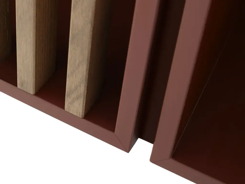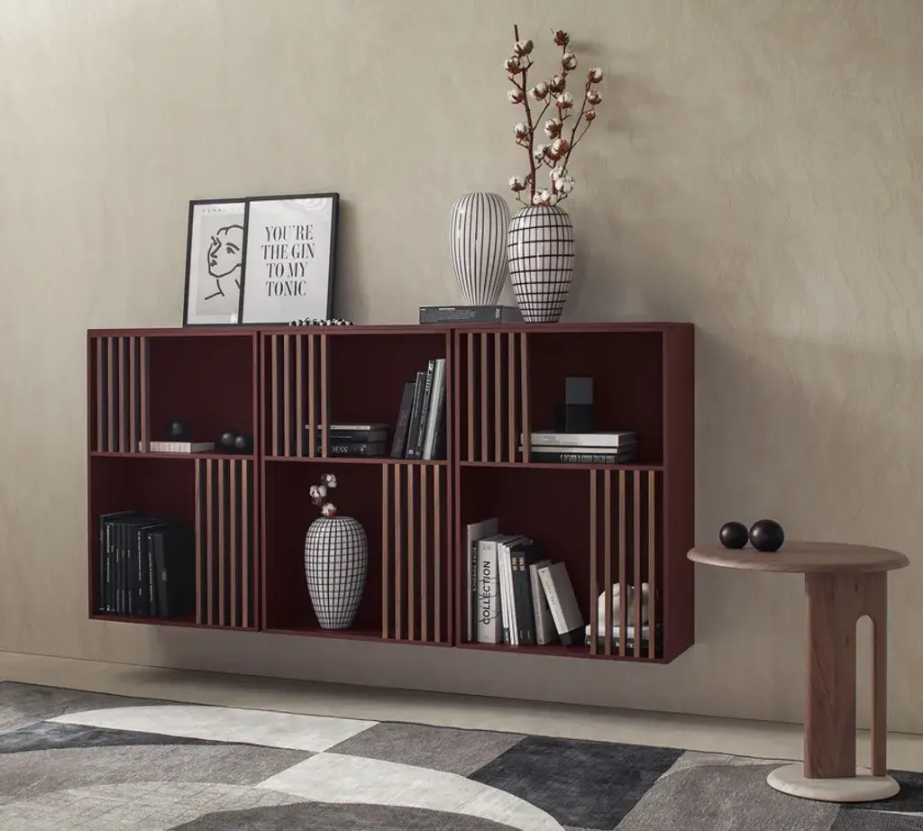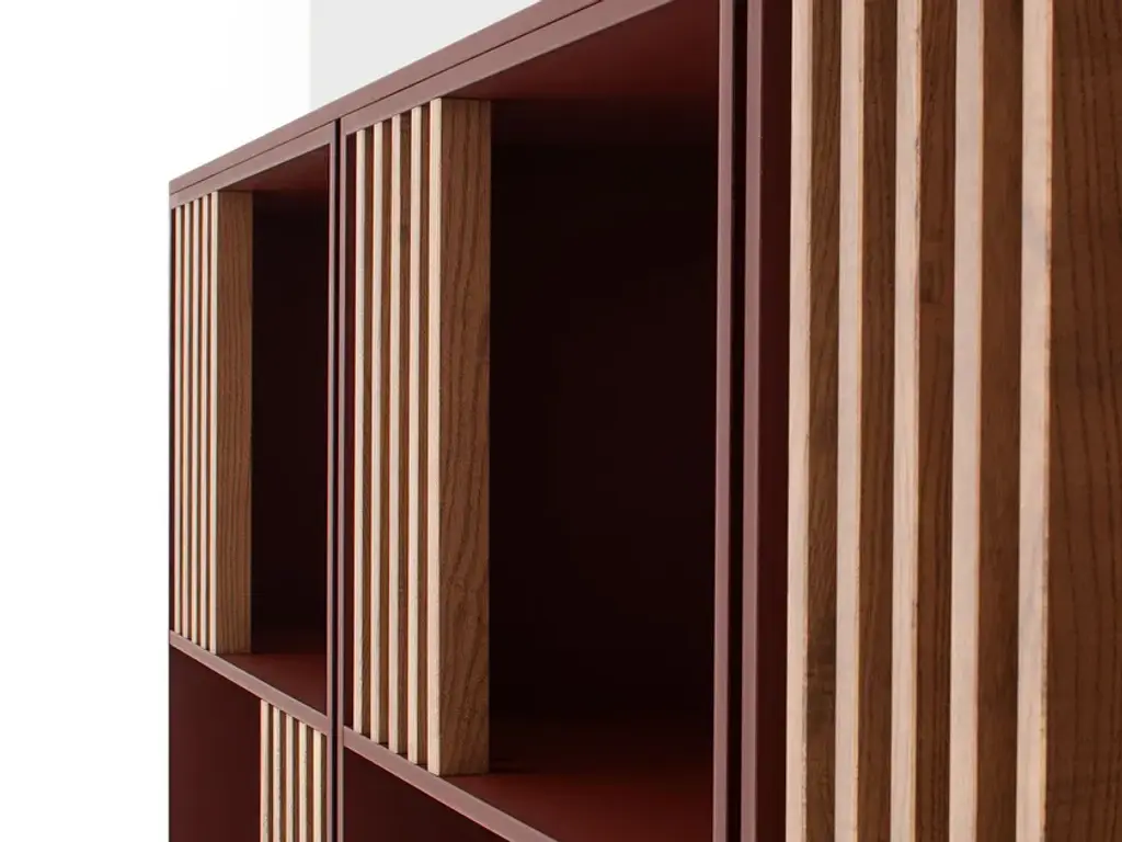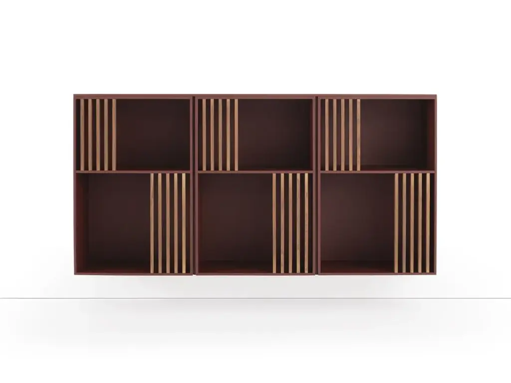 Mondrian is an open suspended sideboard with canaletto walnut slats.The Enjoy Collection is Morica Design’s most sparkling, dynamic collection. The items are lively, inspired by nature, and find their soul in the pastel shades that blend and play with the wood in an original, fresh manner. The distinctive feature of Enjoy Collection is the use of color, declined in functional furnishings and contemporary mood. Modern and refined products made with high quality materials and handcrafted in Italy.