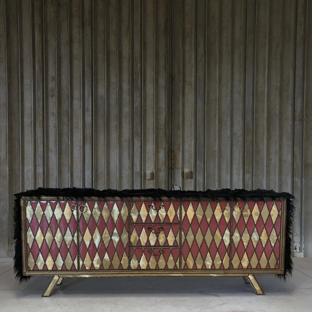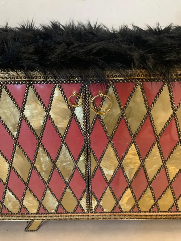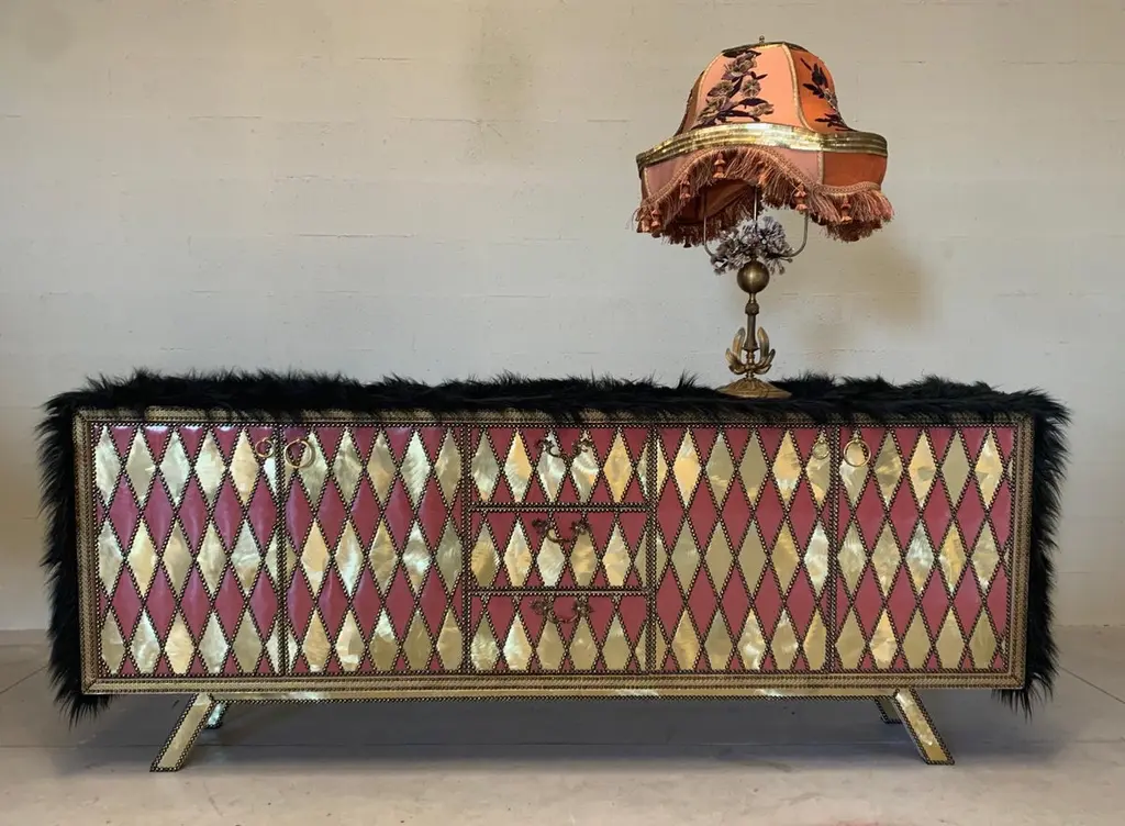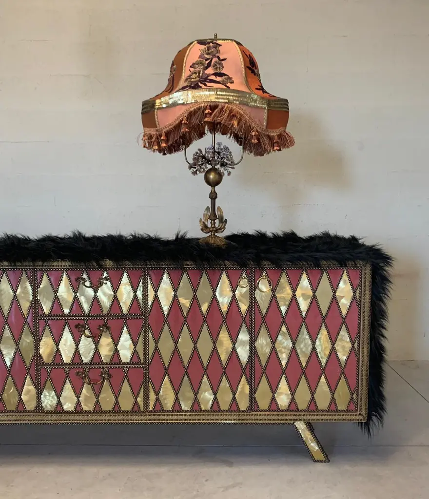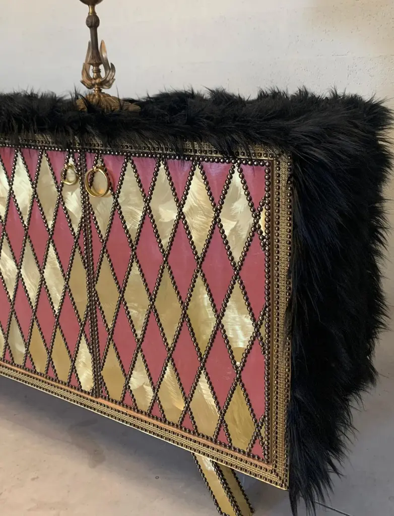 Monkey Pablo Sideboard by Valentina GiovandoDimensions: W 200 x D 45 x H 80 cm.Materials: Wood, Fabric, Brass, Ecofur. Valentina Giovando, Lives and works in Sarzana, in Liguria, and for over 20 years she dedicated herself to the production of a new style. Her style is personal and full of splendour that she declines in the interior decoration through a range of high-craft artistic products. All these products are completely hand-made. Everything contributes to create unique and original pieces that mix ancient and modern, primitive and industrial, poor and precious materials, in a fascinating mix, by the capable Valentinaʼ and her artisanal team hands.