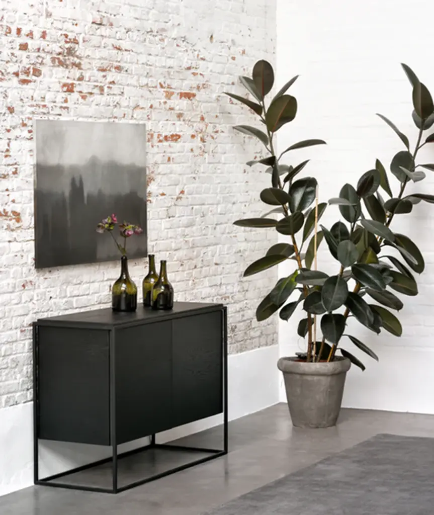 With it's contrasting characteristics of wood and rectangular metal frame, the Monolit Sideboard creates a unique backdrop for all modern media equipment.