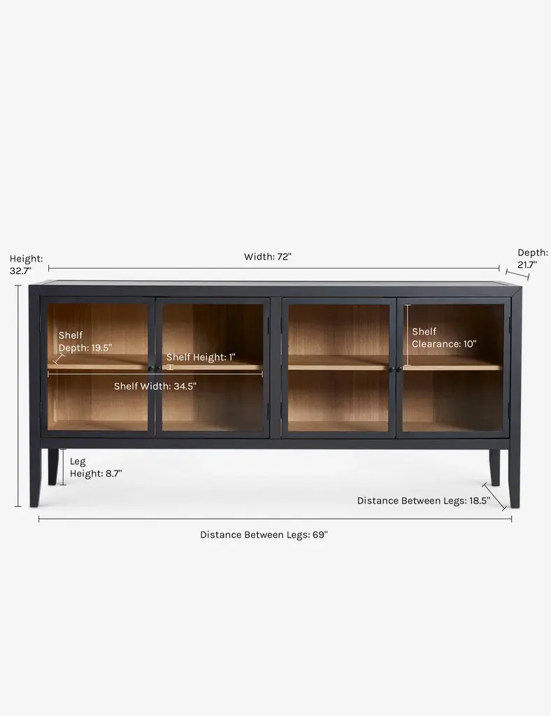 Create a space for storage and display in your dining room or lounge with our Morey curio sideboard. With its clean, stately lines finished in black with a honey oak interior, this sideboard offers understated elegance with style versatility. The spacious surface and glass panel front make this sideboard perfect for transforming everything from vintage finds and books to dining essentials into showstopping curations.