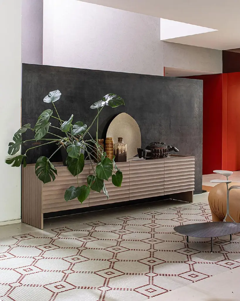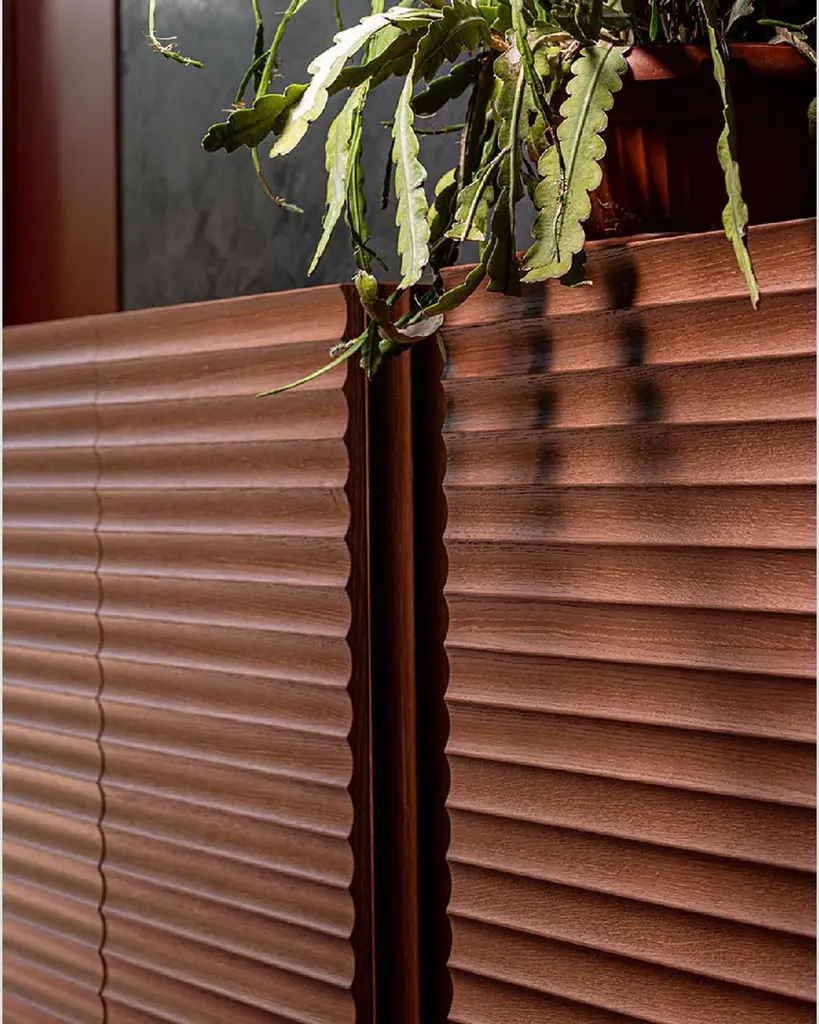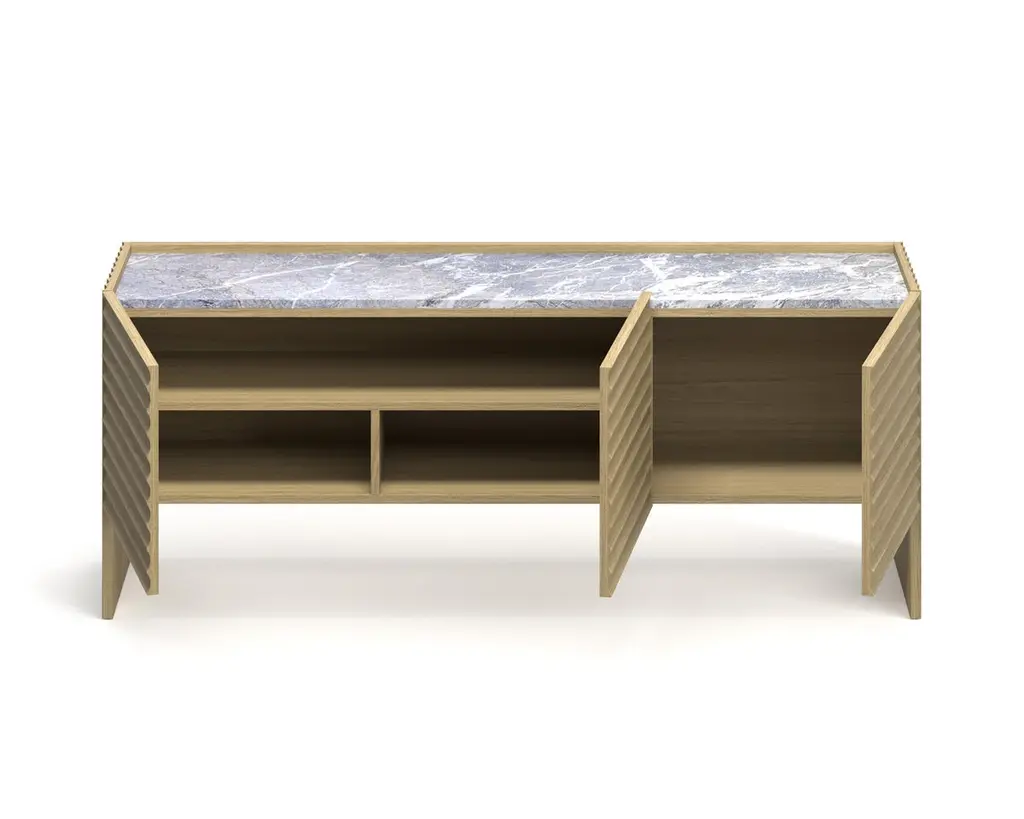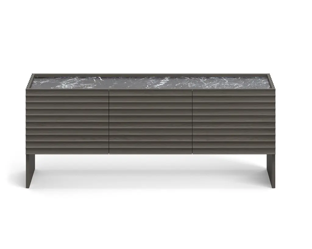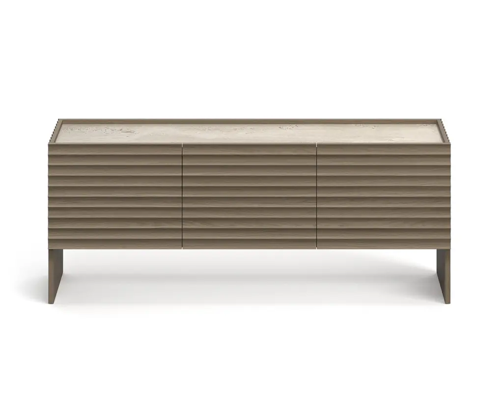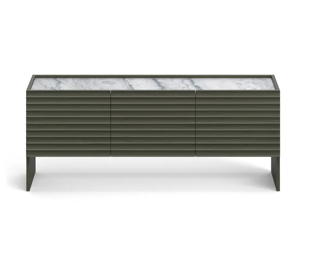 With linear forms and clear-cut symmetries, the Rows collection by Patricia Urquiola is geometrical and minimalist, expressing a refined artistic concept. Doors, side panels and table bases are both formal and decorative. The curved milled edge running the length of the surface is inspired by the nature morte of Amédée Ozenfant, a French writer and painter who founded the Purism movement.The storage series comprises four types of units, including two sideboards, a cabinet and a console table with drawers, designed for the dining and living space. The units are made from particleboard with an oak veneer finish, applied using a membrane press – a process that preserves the continuity of the grain and gives the furniture an artisanal feel, without hiding the industrial method of production.Different tops and finishes options available, please inquire with us.DIMENSIONS:Small: W. 180 x D. 45 x H. 72 cmMedium: W. 240 x D. 45 x H. 64 cmAvailable in different options, price upon request.
