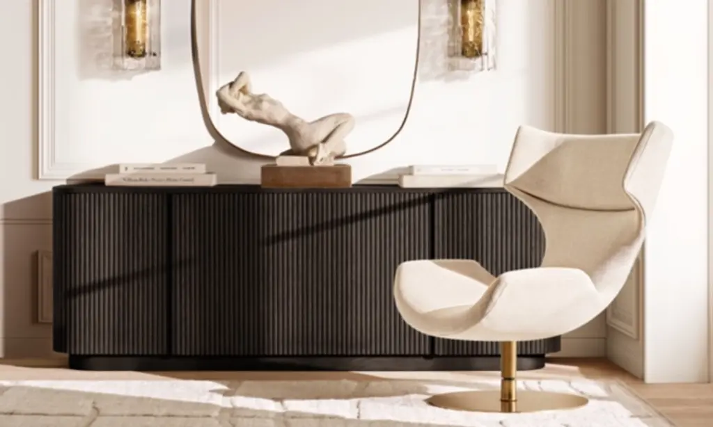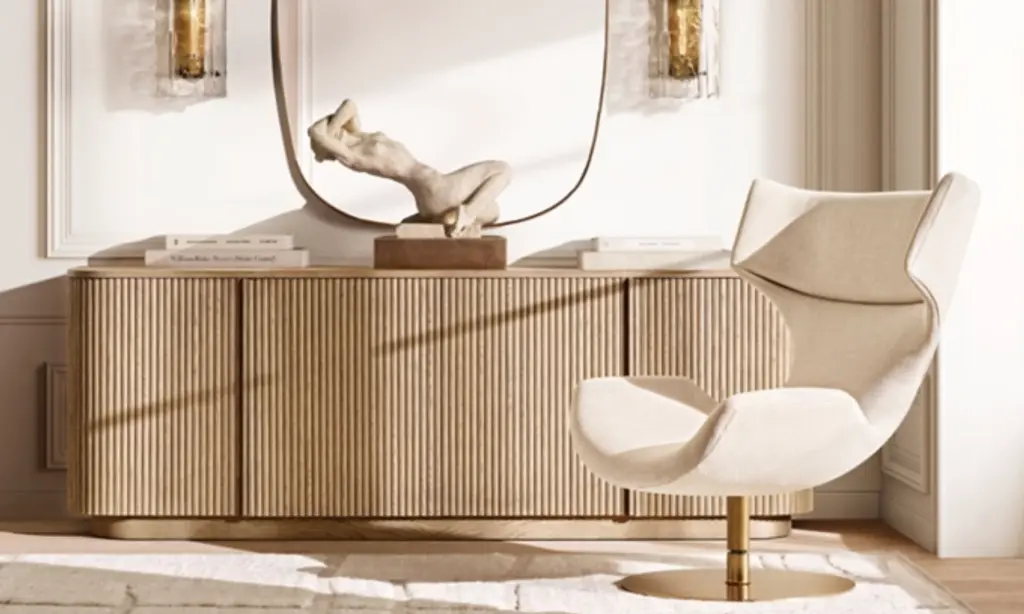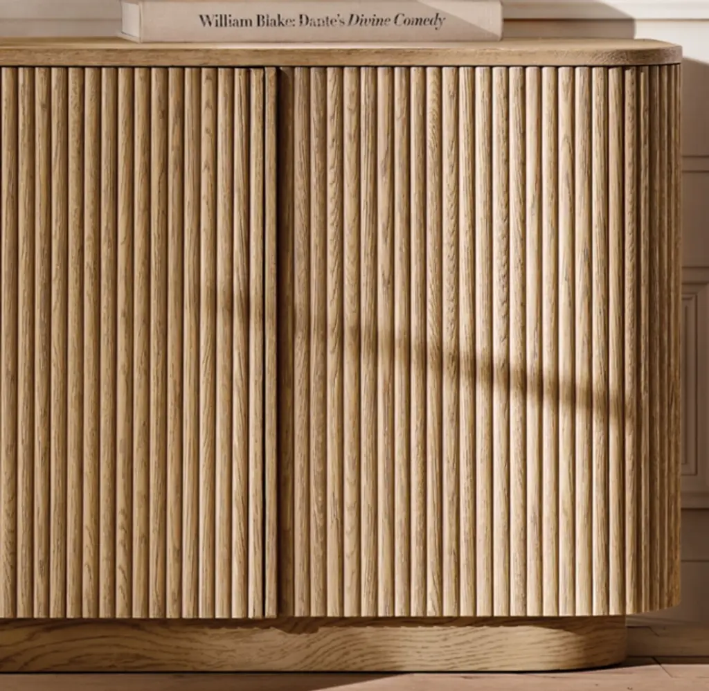 Defined by individually applied reeds of wire-brushed solid American white oak, Mulholland is the creation of celebrated design team Thomas Bina and Ronald Sasson. The collection features radius corners and doors that curve around the side for an uninterrupted, fluid silhouette. SHOP THE ENTIRE COLLECTIONEXPLORE ALL REEDED COLLECTIONS