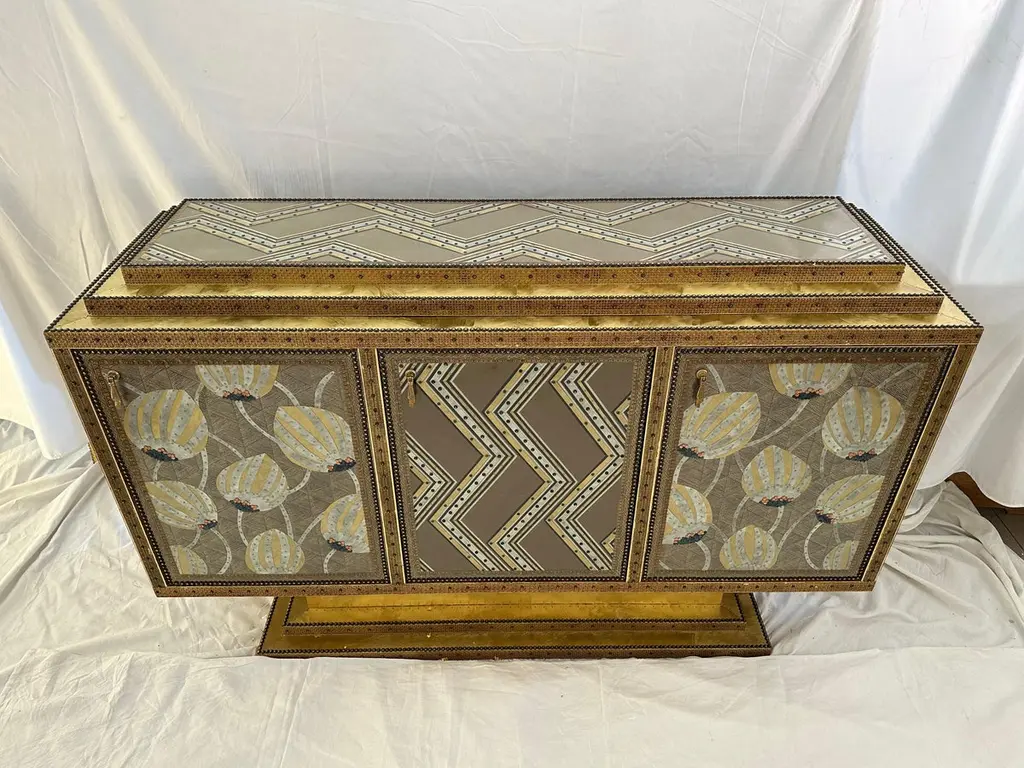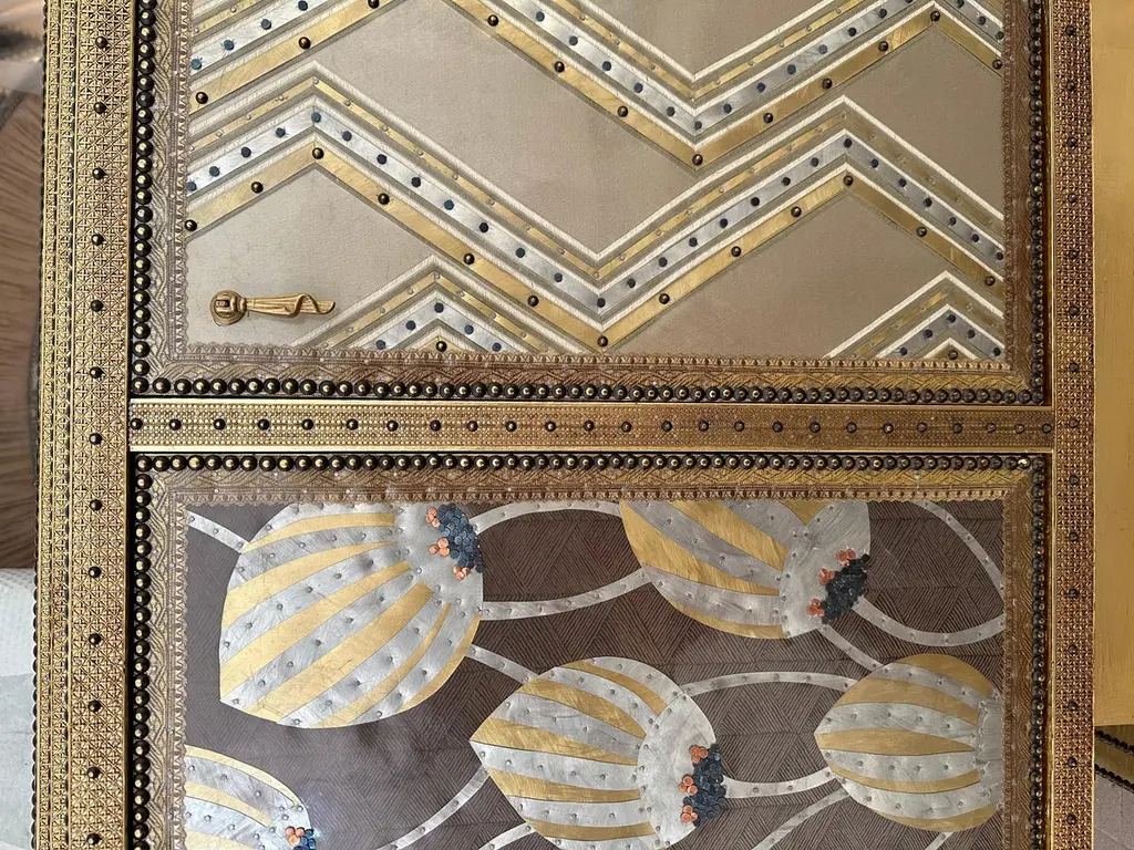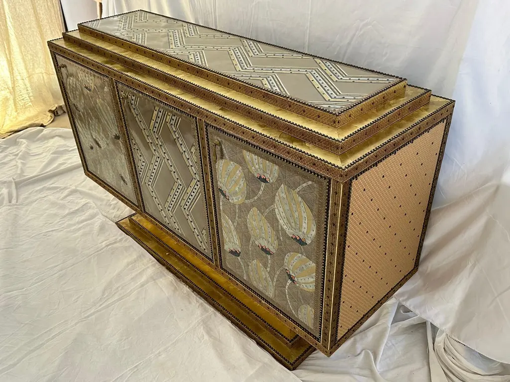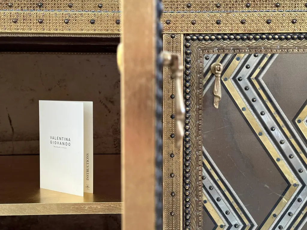 Munìs Sideboard by Valentina GiovandoDimensions: W 150 x D 50 x H 95 cm.Materials: Wood, Fabric, Brass, Zinc, Fiberglass, Bronze. Valentina Giovando, Lives and works in Sarzana, in Liguria, and for over 20 years she dedicated herself to the production of a new style. Her style is personal and full of splendour that she declines in the interior decoration through a range of high-craft artistic products. All these products are completely hand-made. Everything contributes to create unique and original pieces that mix ancient and modern, primitive and industrial, poor and precious materials, in a fascinating mix, by the capable Valentinaʼ and her artisanal team hands.
