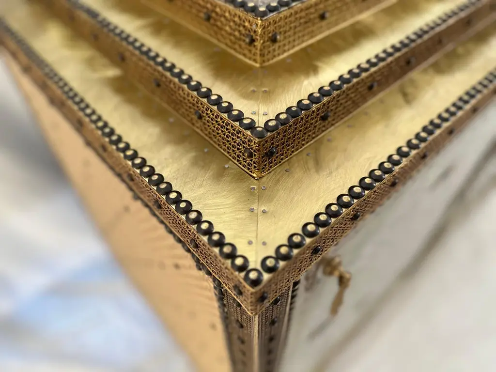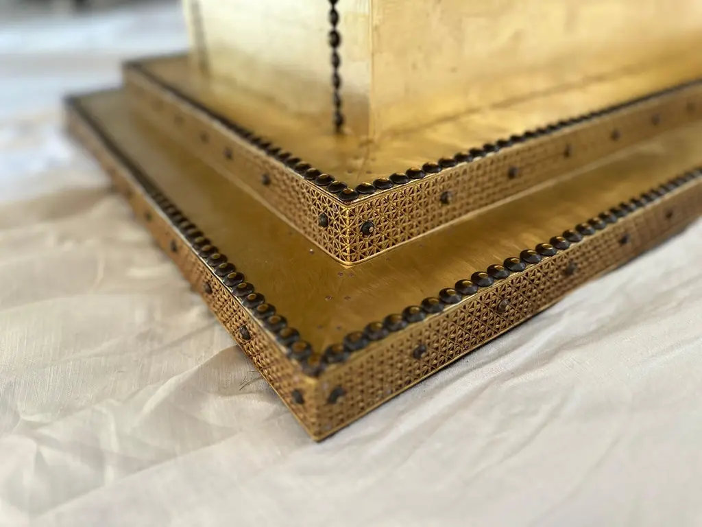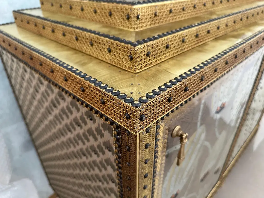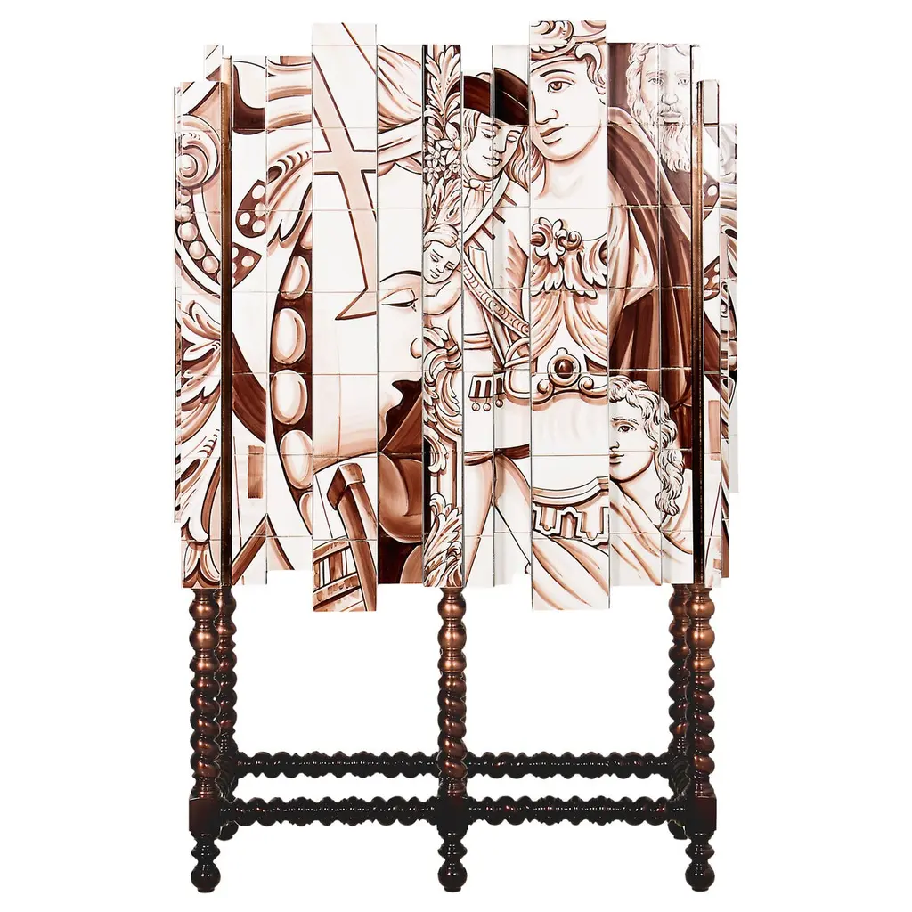 Munìs Sideboard by Valentina GiovandoDimensions: W 150 x D 50 x H 95 cm.Materials: Wood, Fabric, Brass, Zinc, Fiberglass, Bronze. Valentina Giovando, Lives and works in Sarzana, in Liguria, and for over 20 years she dedicated herself to the production of a new style. Her style is personal and full of splendour that she declines in the interior decoration through a range of high-craft artistic products. All these products are completely hand-made. Everything contributes to create unique and original pieces that mix ancient and modern, primitive and industrial, poor and precious materials, in a fascinating mix, by the capable Valentinaʼ and her artisanal team hands.