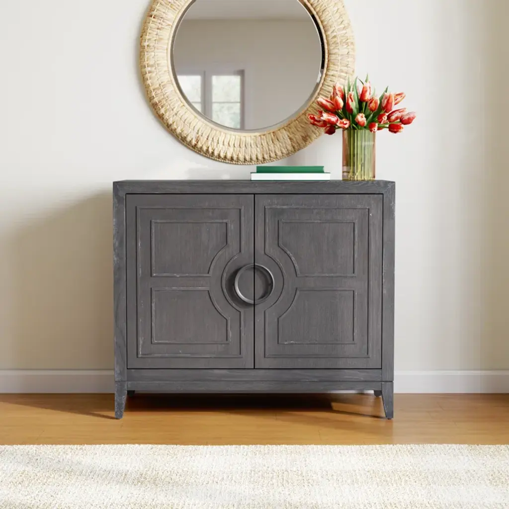 Introducing the Nadine Accent Chest - a true masterpiece that demands admiration with its mesmerizing Ravenwood finish. Delicate wooden carvings adorn its exterior, elevating it to the status of a stunning work of art. But this chest is not just about aesthetics; it is a testament to impeccable functionality. Equipped with a tip kit for added stability and adjustable levelers for perfect alignment, this chest is built to impress. Crafted from solid oak with oak veneer, it exudes durability and timeless elegance. Elevate your space with the Nadine Accent Chest - a fusion of beauty and practicality.