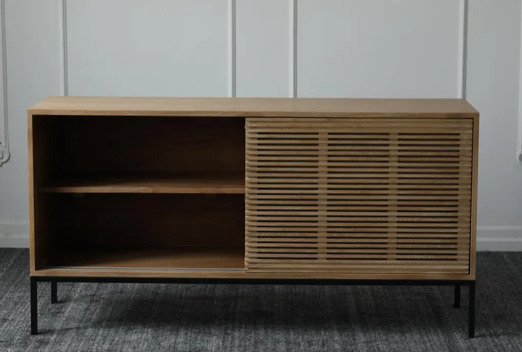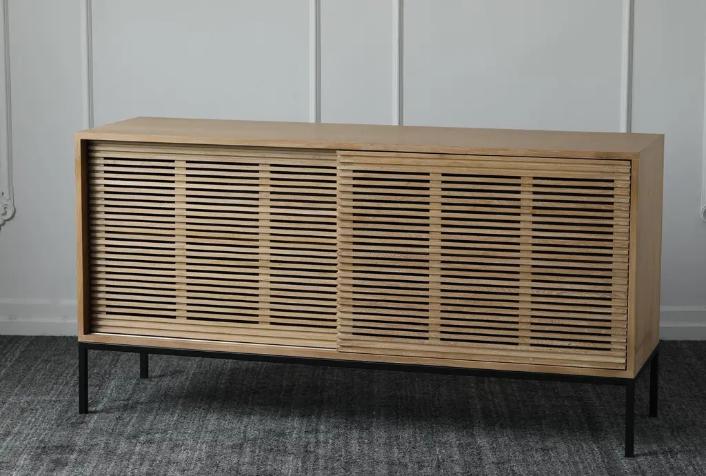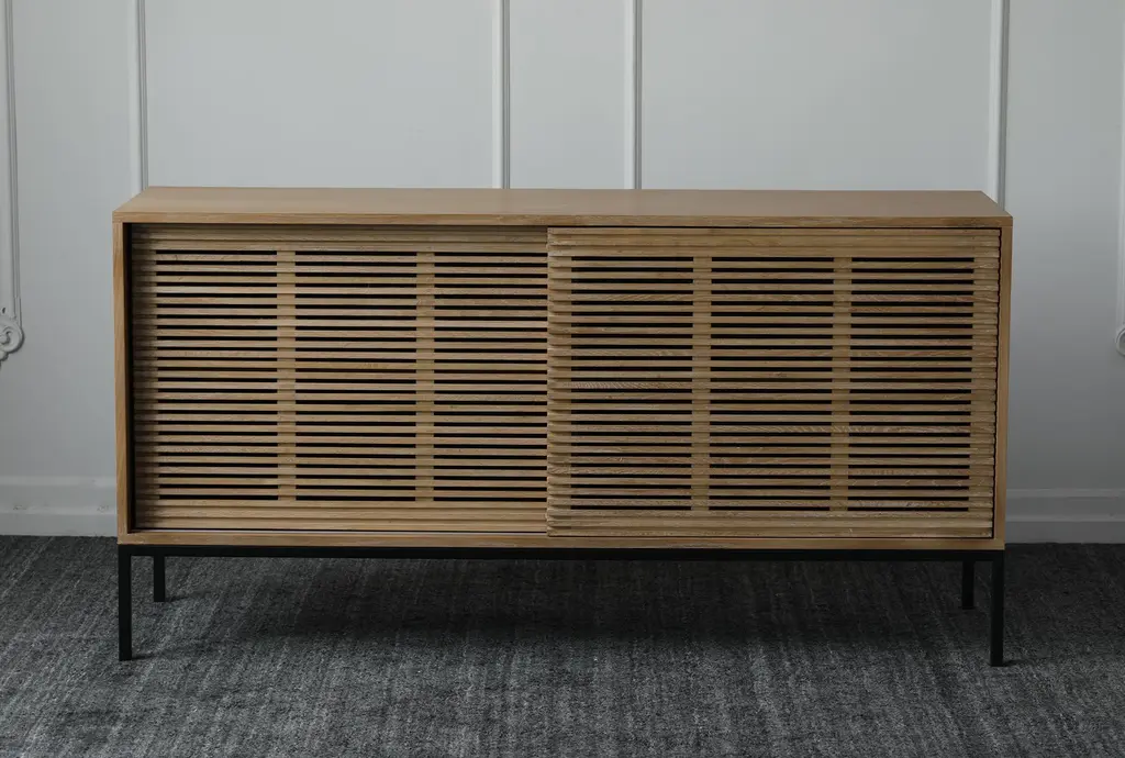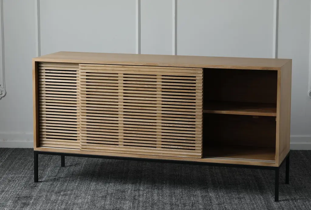 Natural Oak Slatted Sliding Door Sideboard