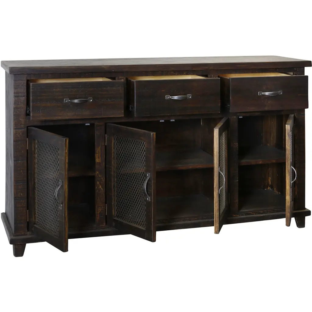 Introduce the charm of the nevada collection into your living room or dining room with this stunning four-door sideboard with three drawers. This sideboard combines rustic appeal with transitional design, offering ample storage with its wood grain accents that bring warmth and character to any space. Perfect for storing dining essentials or living room accessories, it's an ideal fit for any entryway as well.